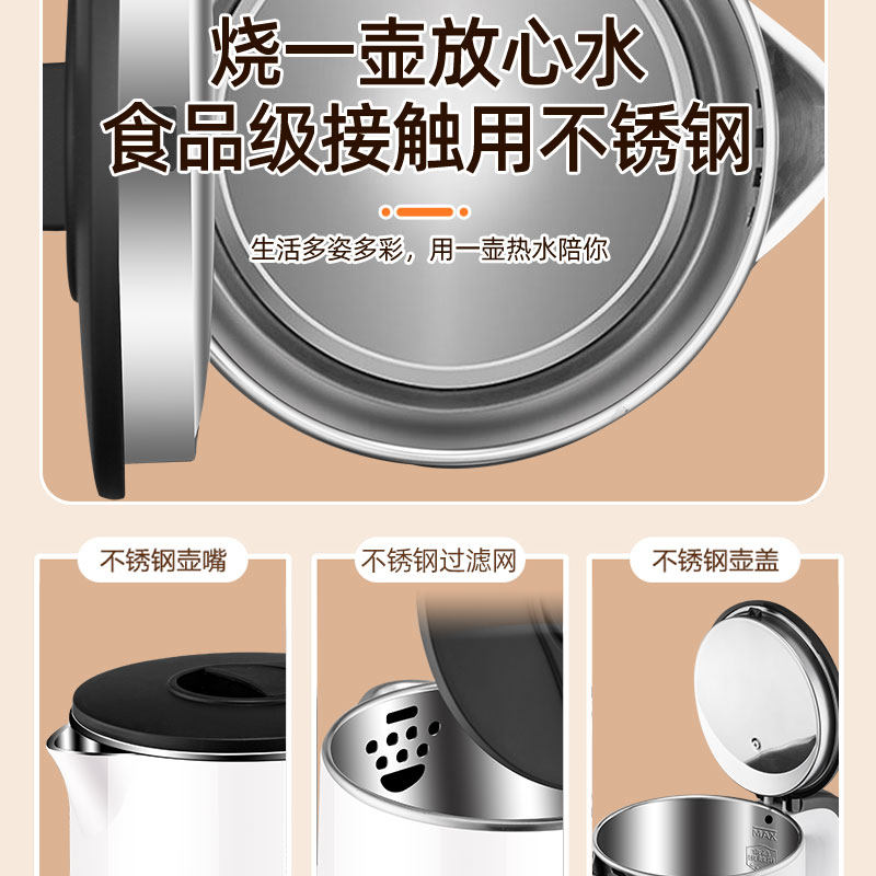 📚 半球电水水壶家用保温304不锈钢随手泡快壶防烫自动断电烧开水壶2