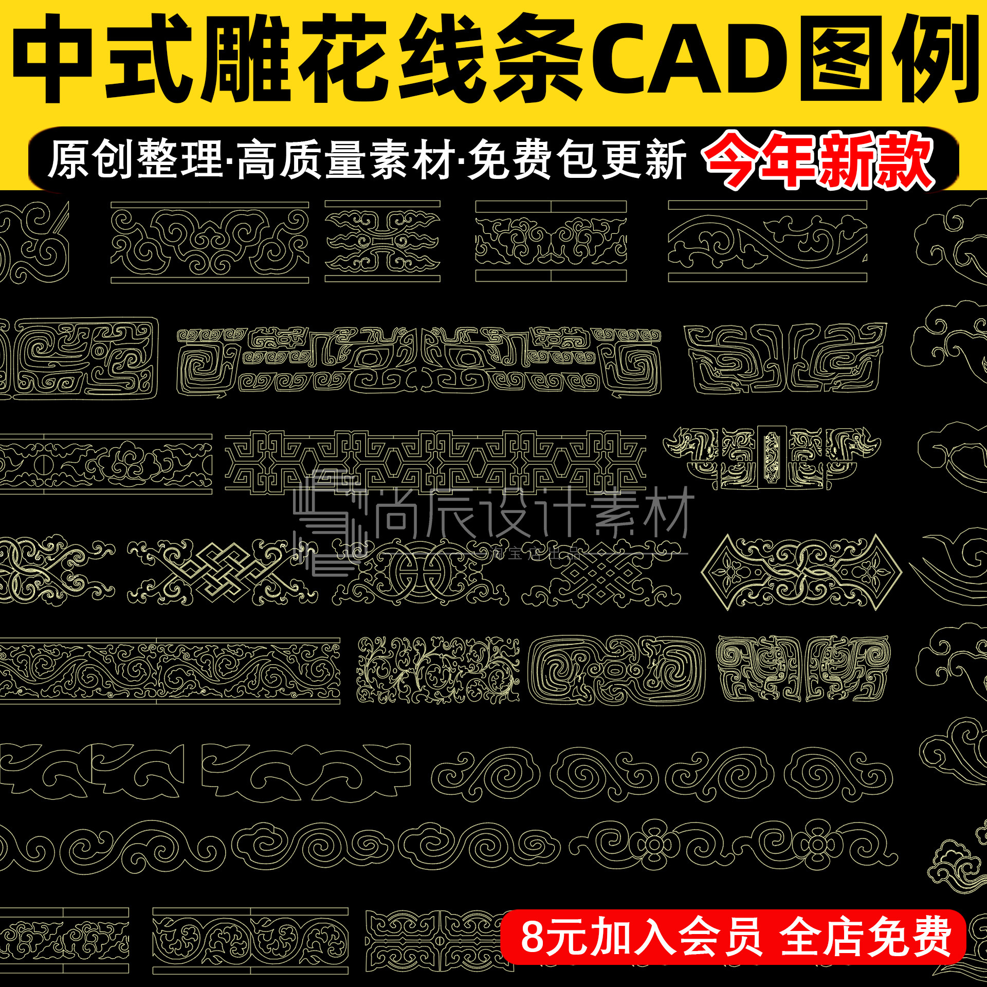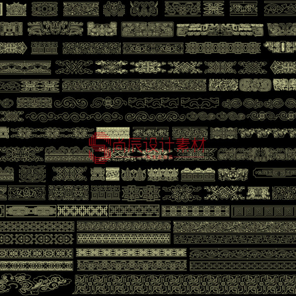 📚 中式线条雕花镂空雕花窗格角花花格线条CAD图库图块