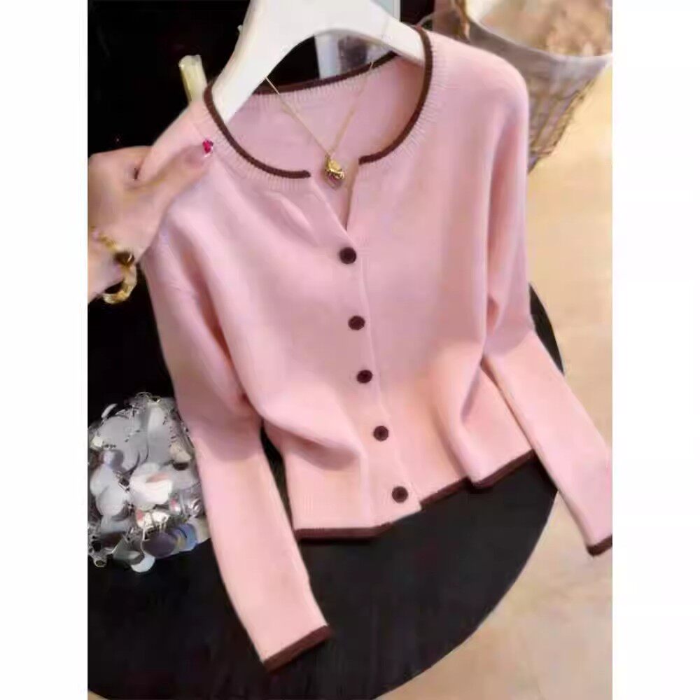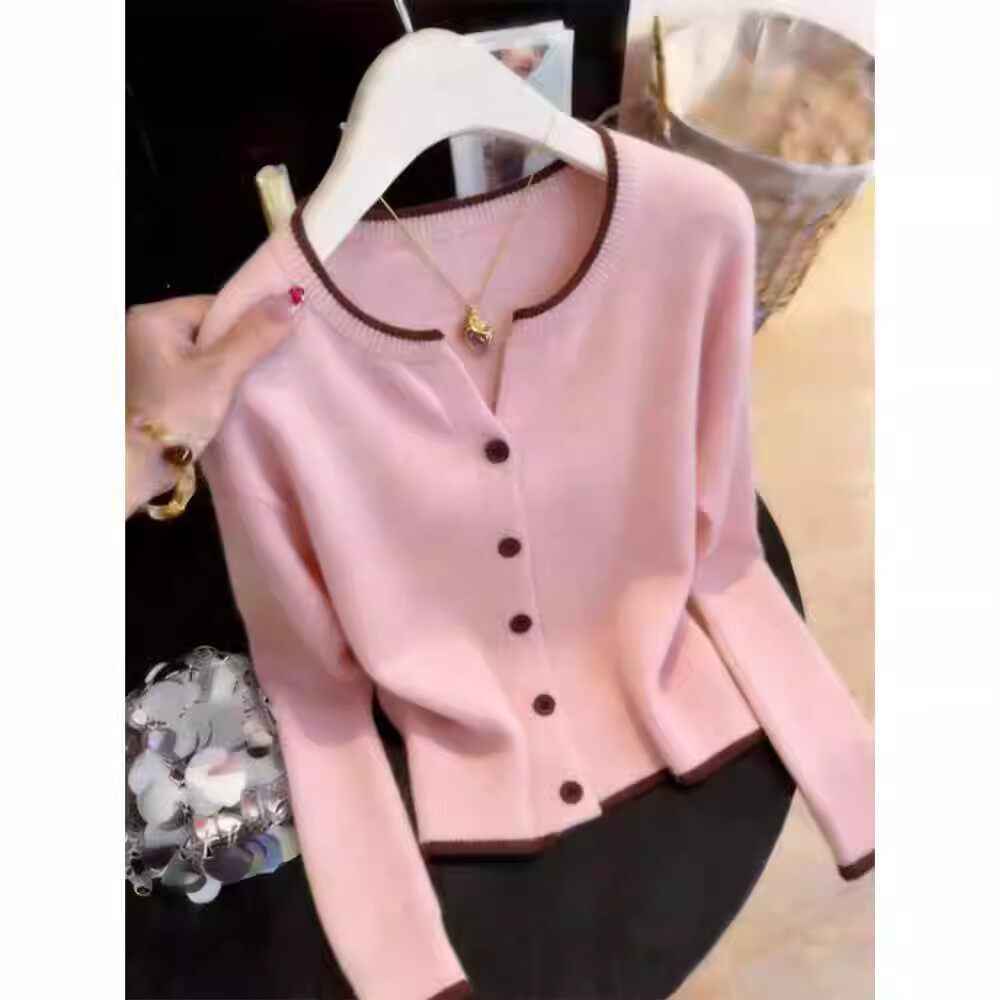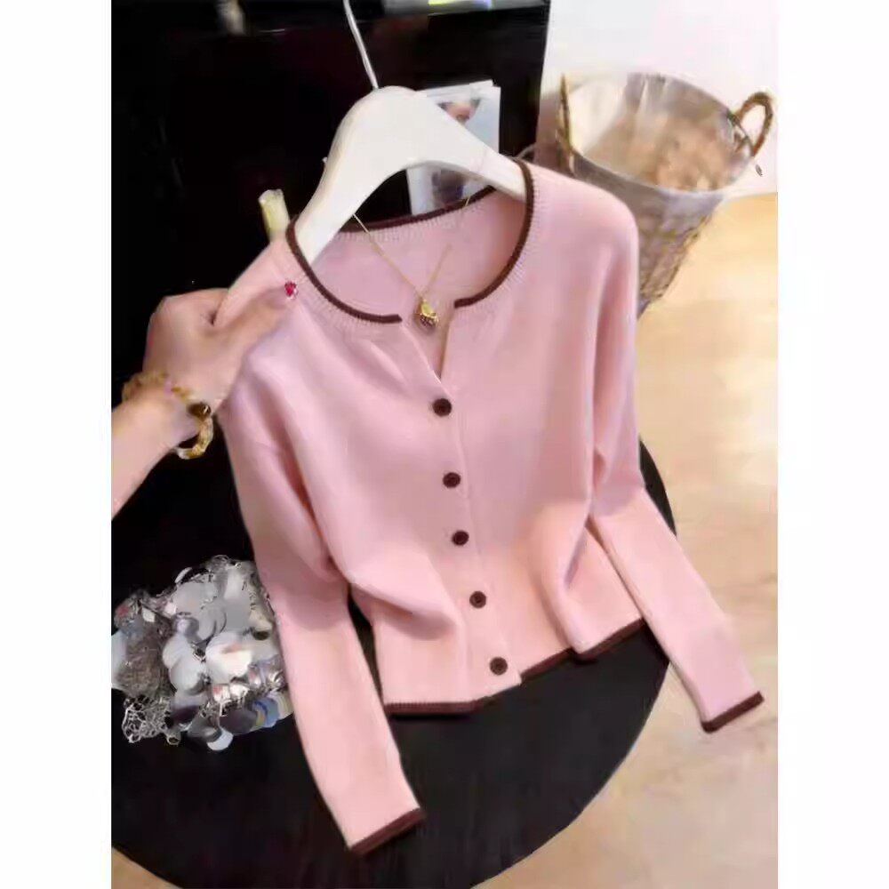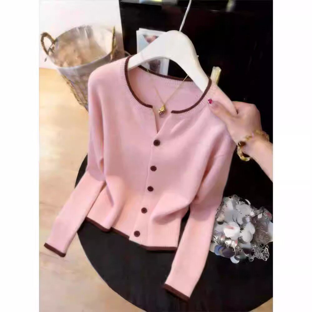 📚 2026春秋季新款女士慵懒风松弛感针织开衫小个子甜美粉色打底上衣