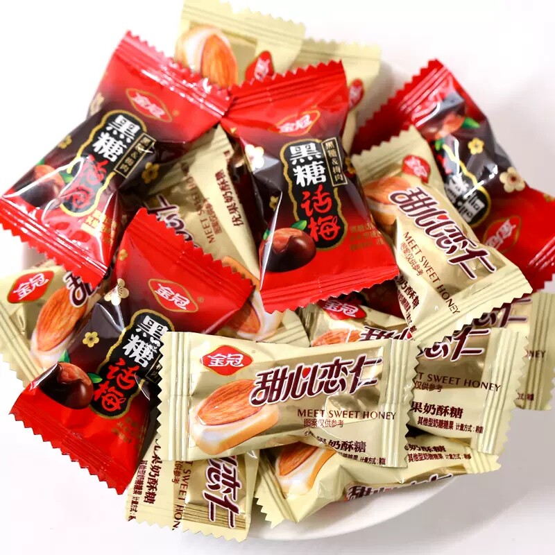 📚 金冠黑糖话梅蜜姜红糖结婚喜庆年货喜糖果甜心恋仁散装休闲零食品