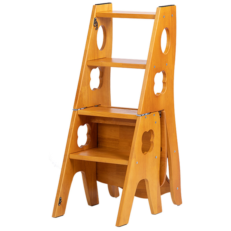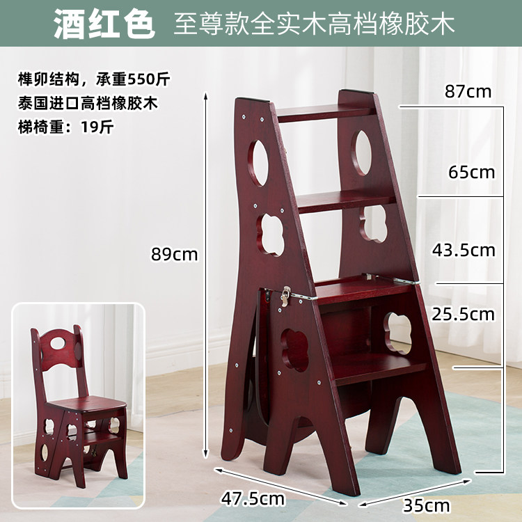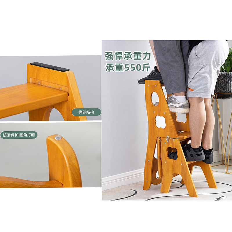 📚 全实木橡胶木梯凳台阶登高踏板两用四步梯子中老年多功能折叠梯椅