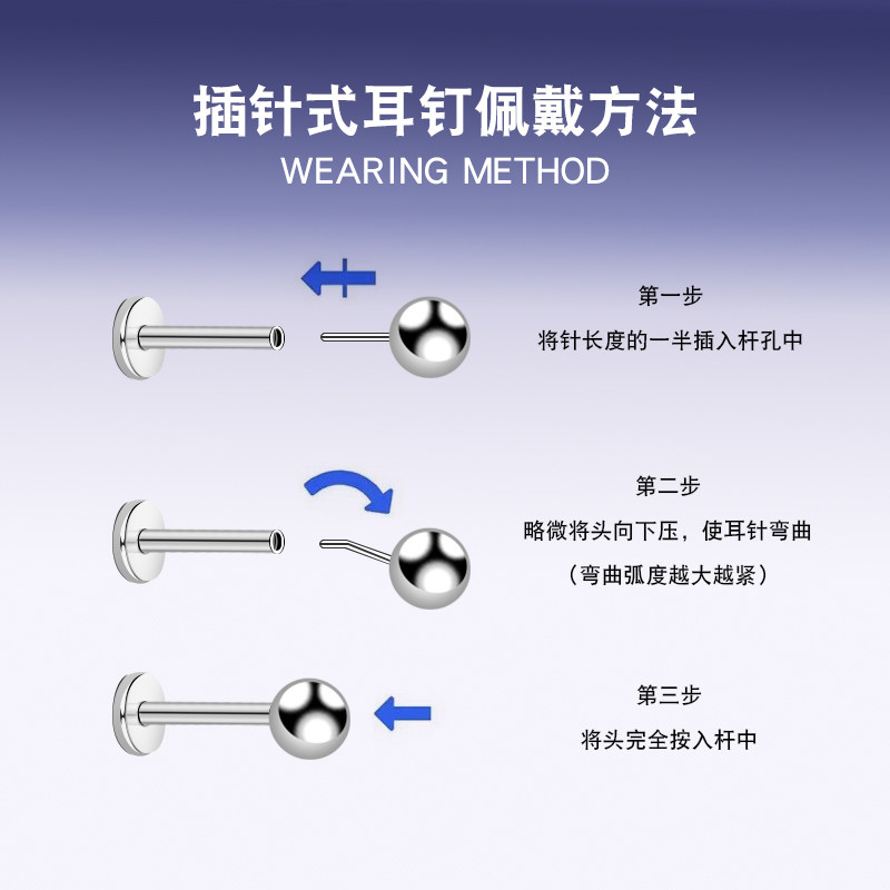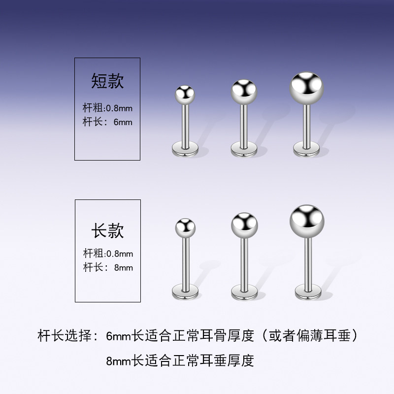 📚 【植入级f136钛合金耳钉】养耳洞睡觉免摘插入式球球耳骨耳蜗钉女