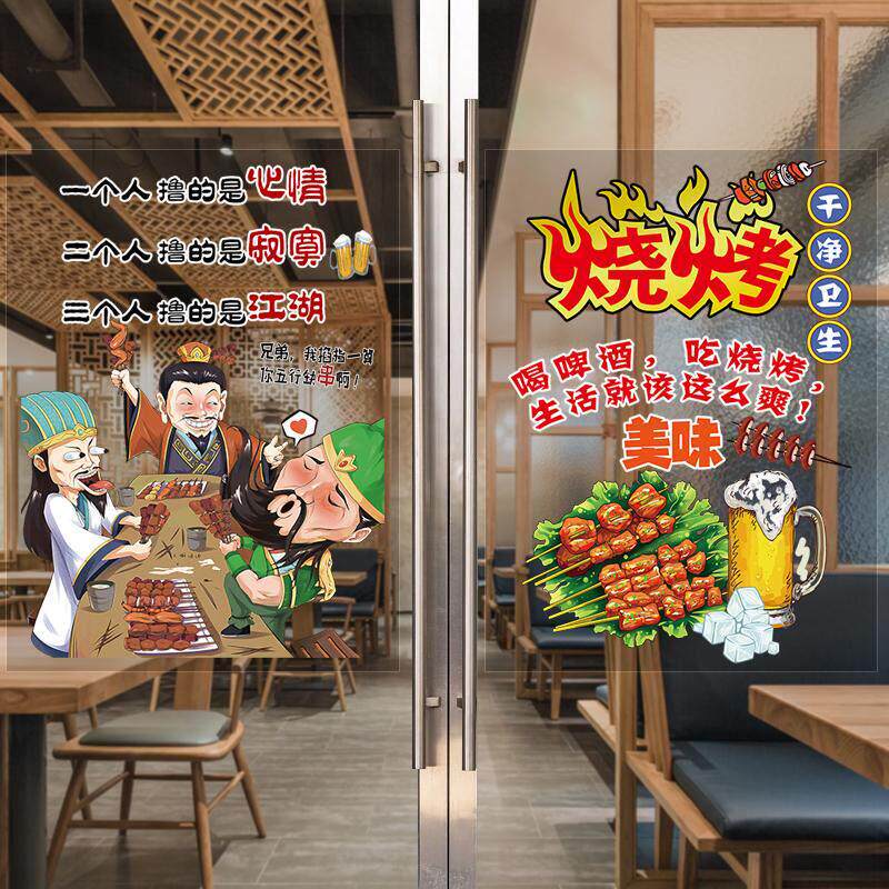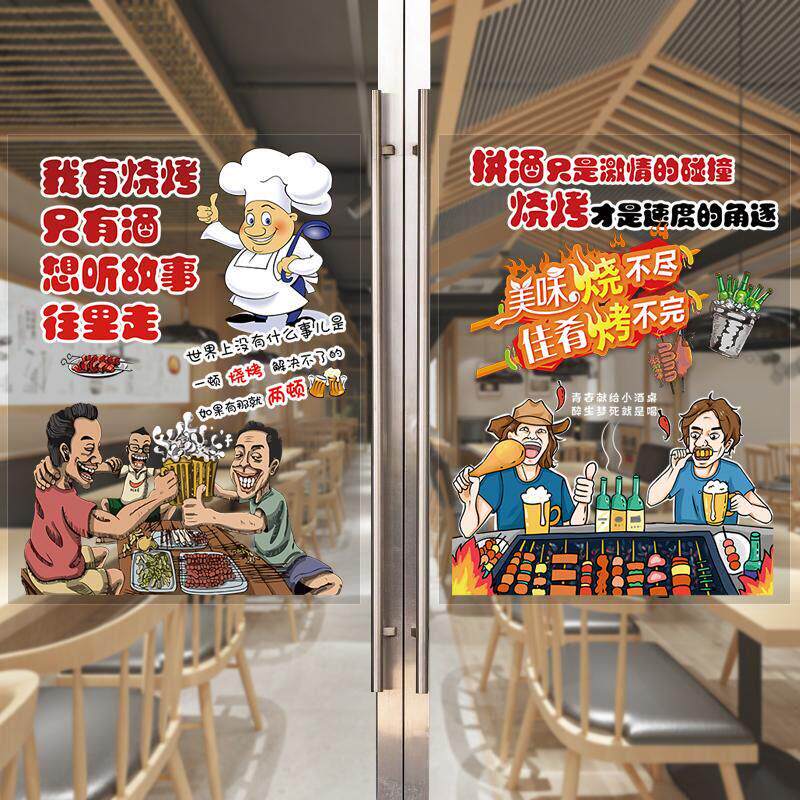 📚 烧烤店玻璃橱窗门贴纸广告宣传创意文字装饰海报静电贴画撸串卡通