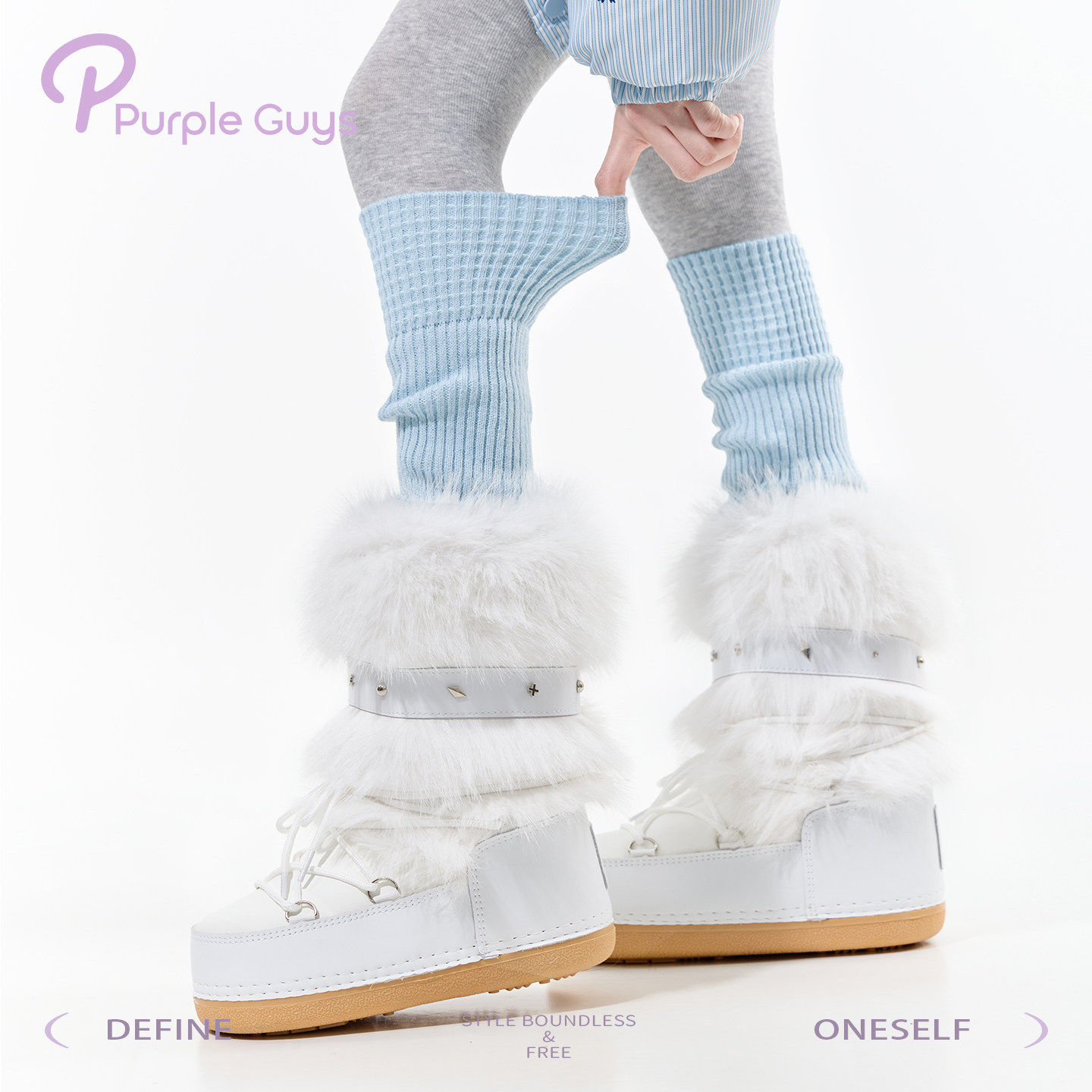 📚 purpleguys白色袜套女2025新款冬加厚保暖堆堆过膝袜子蓝色腿套
