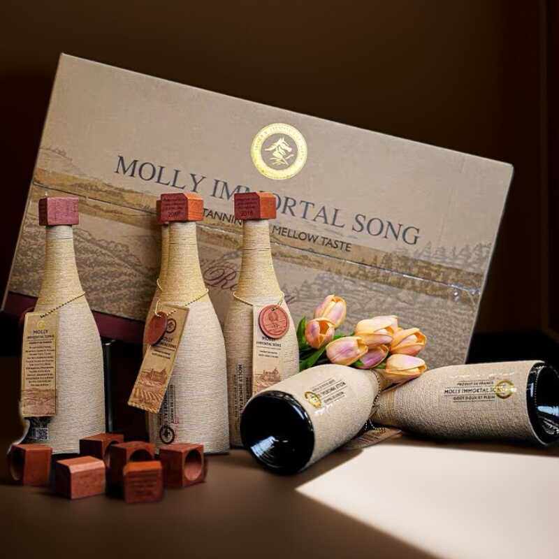 📚 木妮仙歌古堡珍藏干红葡萄酒整箱装法国AOP老藤红酒15度750ml*3瓶