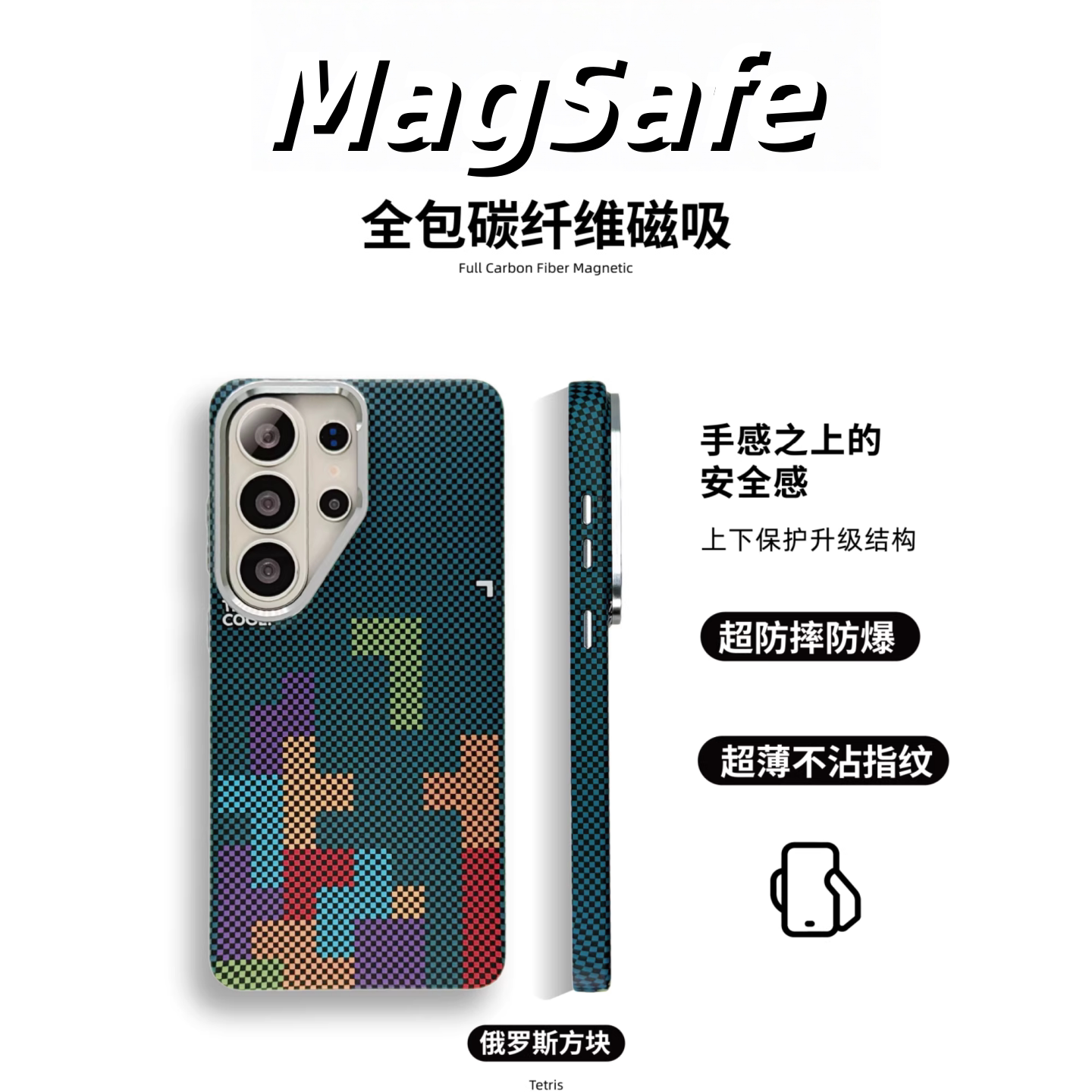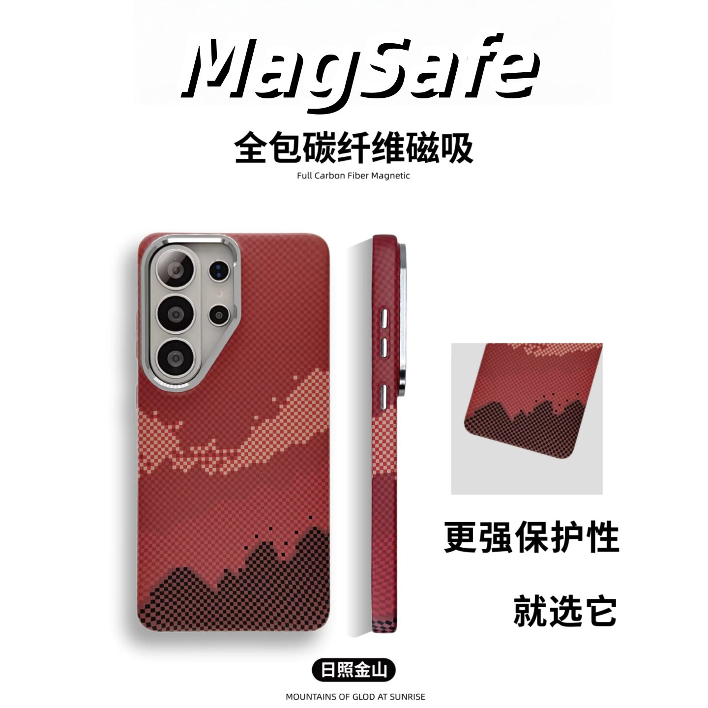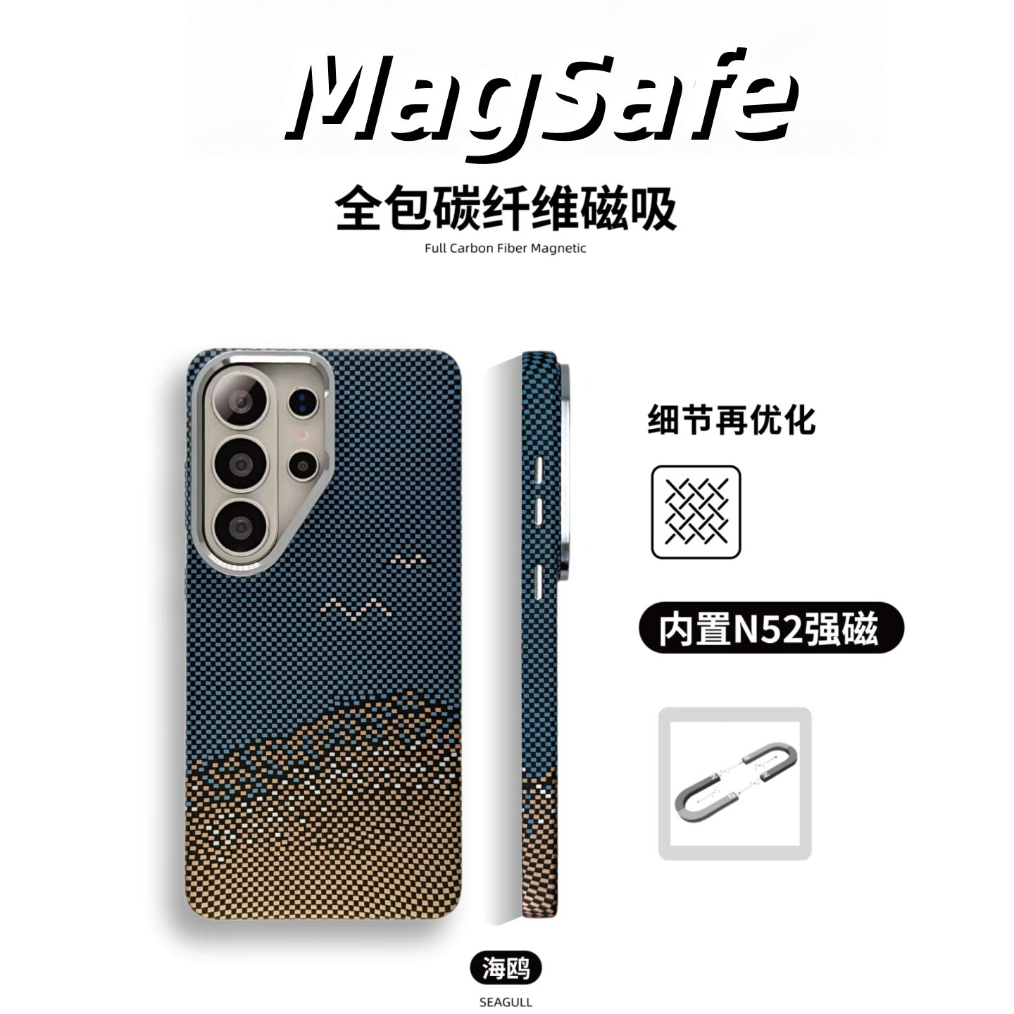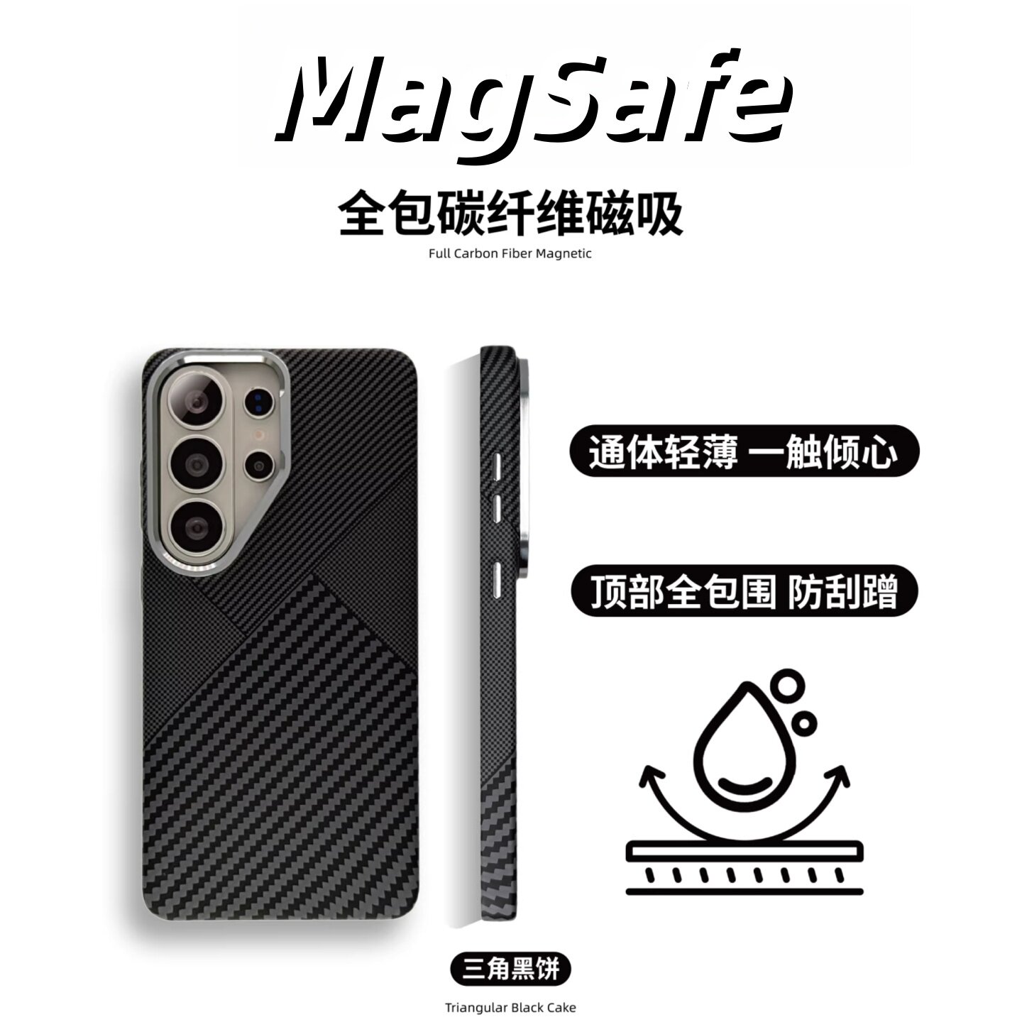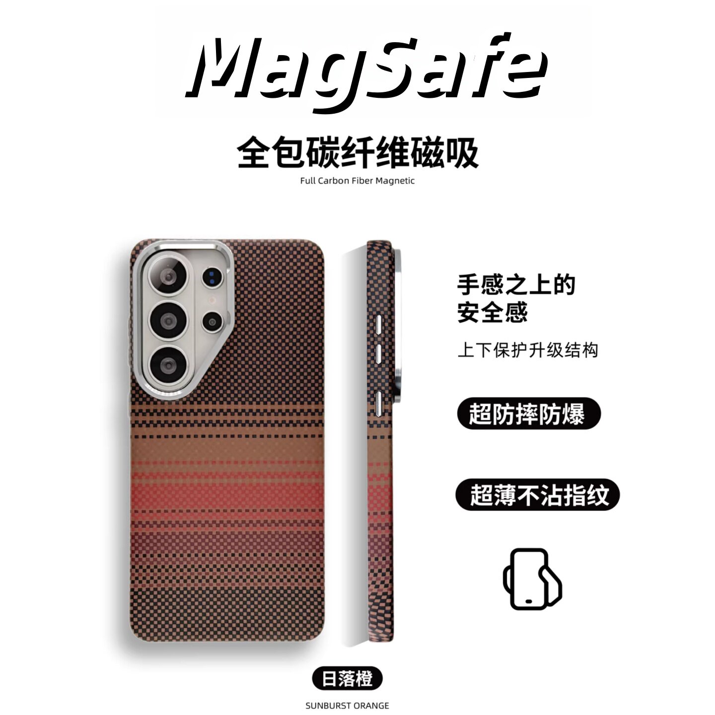 📚 超薄凯夫拉纹适用于三星S26Ultra手机壳全包碳纤维纹S25U肤感磨砂pc硬壳S24U金属镜头MagSafe磁吸s23u保护套