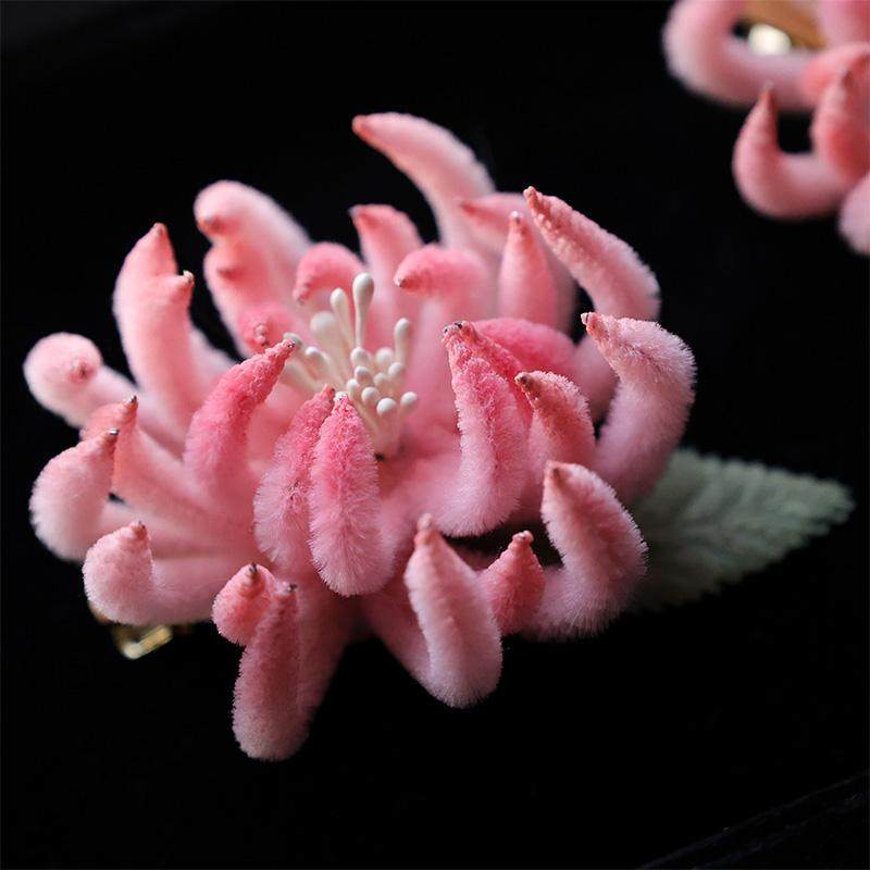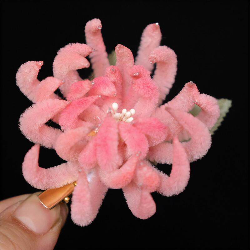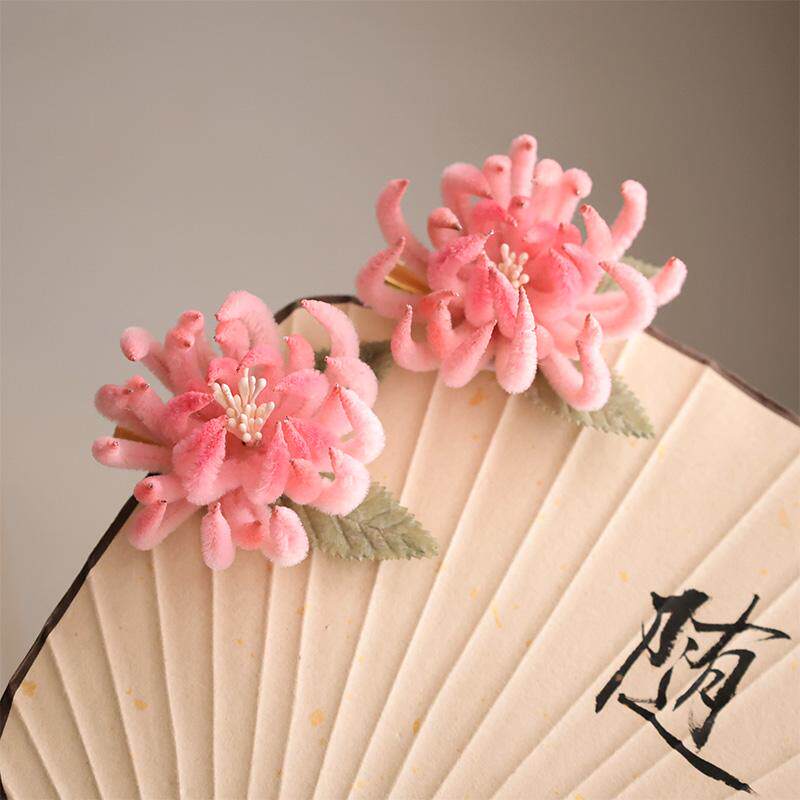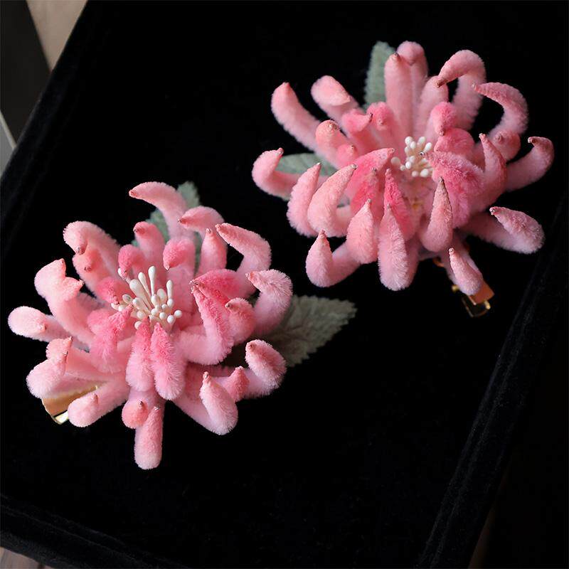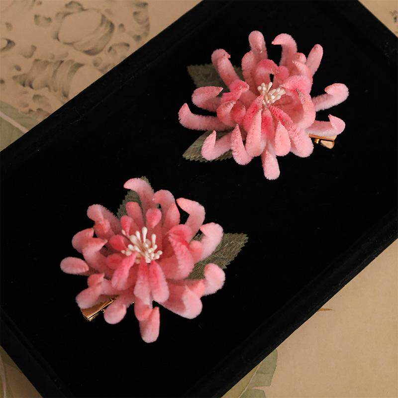 📚 古风非遗仿绒花发夹侧边掩鬓点缀边夹国风汉服配饰寒菊花头饰发饰