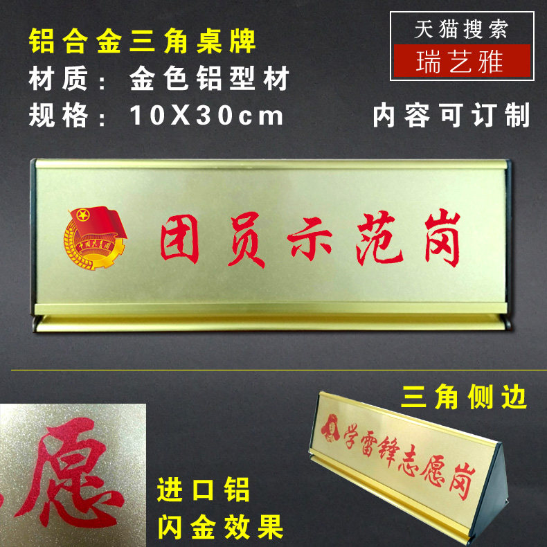 📚 定做党员先锋岗团员示范岗桌牌青年文明号台牌学雷锋志愿服务岗标识牌巾帼文明岗位牌为人民服务三角桌牌订制