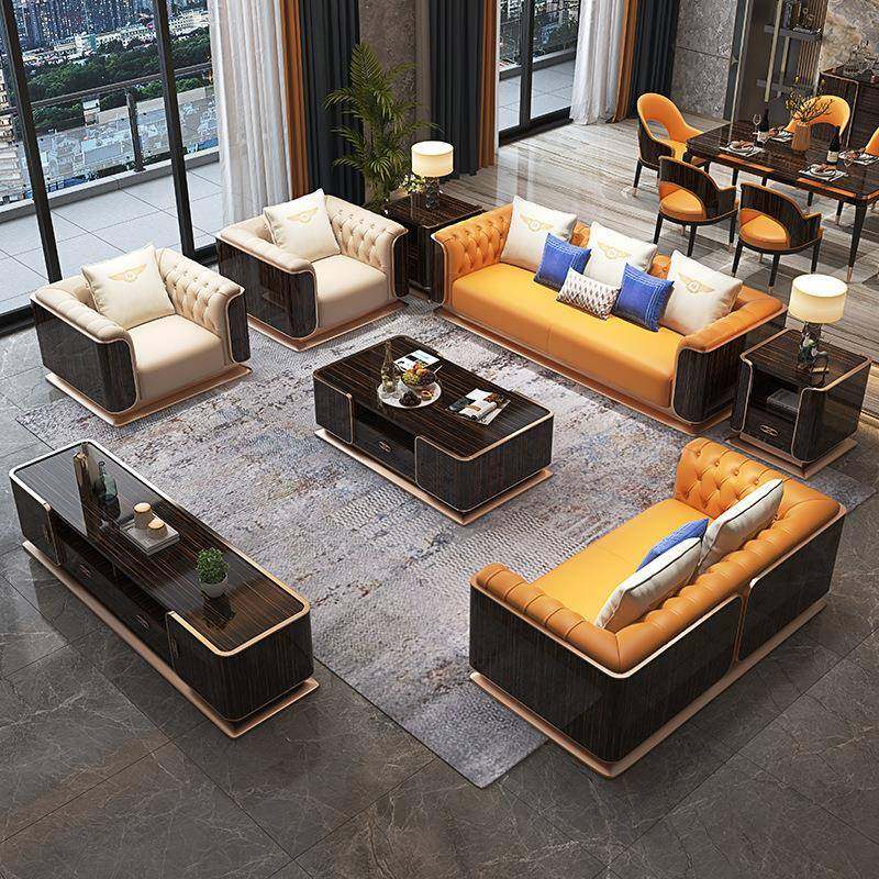 📚 意式轻奢真皮沙发美式皮沙发大户型别墅沙发港式设计师宾利沙发