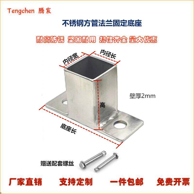 📚 促销不锈钢方管立柱栏杆铁管加厚固定法兰底座紧固件内外连接脚套