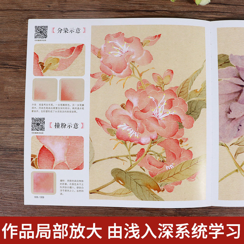 📚 【附教学视频】没骨花卉日课 中国画传统技法教程 末芥绿杨薇没骨花鸟技法恽寿平任伯年画稿国画入门自学零基础教材临摹画册书籍