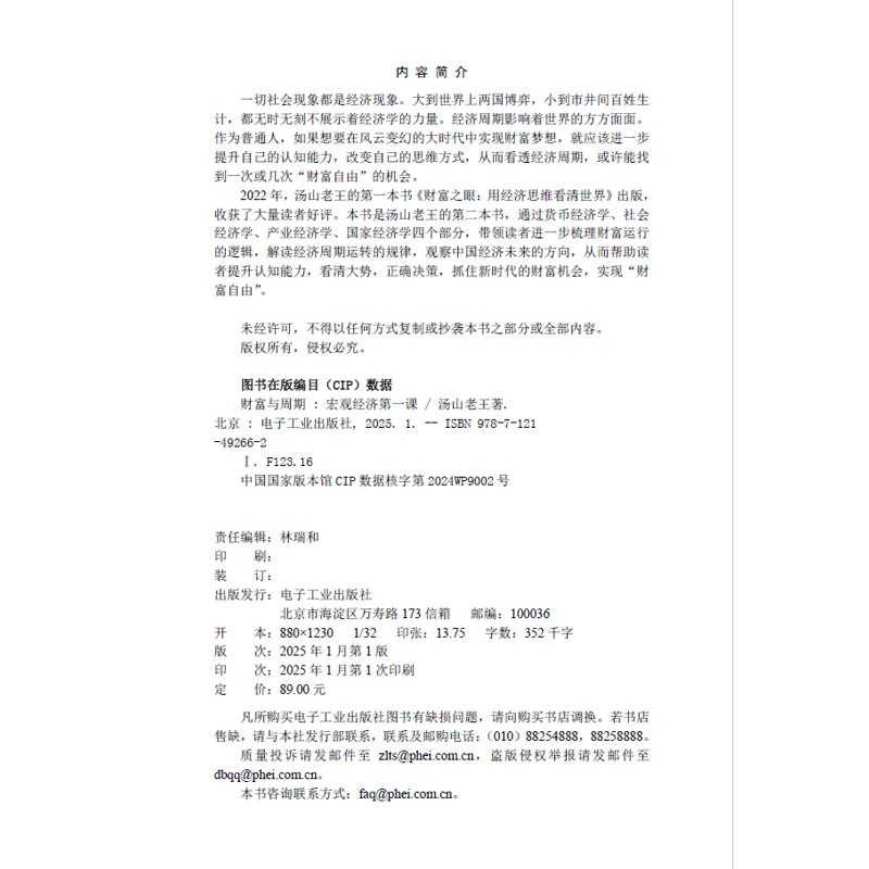 📚 财富与周期-宏观经济第一课汤山老王经济理论电子工业出版社新华书店正版