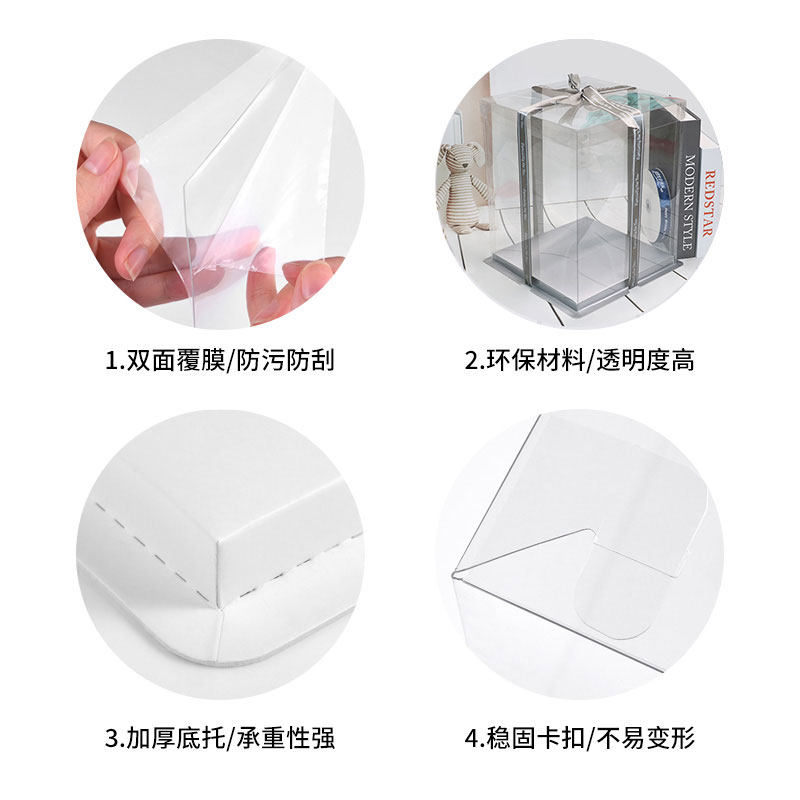 🎈这款蛋糕盒的设计简直太赞了!透明度高,一眼就能看出它的精致和独特。而且,它采用了全6、8、10寸的尺寸选择,完全满足不同大小蛋糕的需求。最重要的是,它还有加高设计,让蛋糕盒更加稳固,不易破损。
