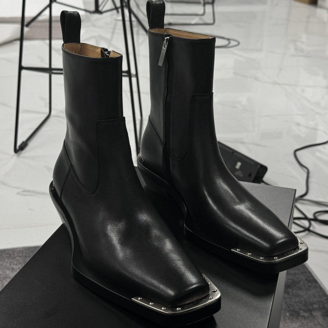 📚 切尔西靴方头马丁靴男女高帮铁头靴高跟潮款拉链英伦风休闲靴子男