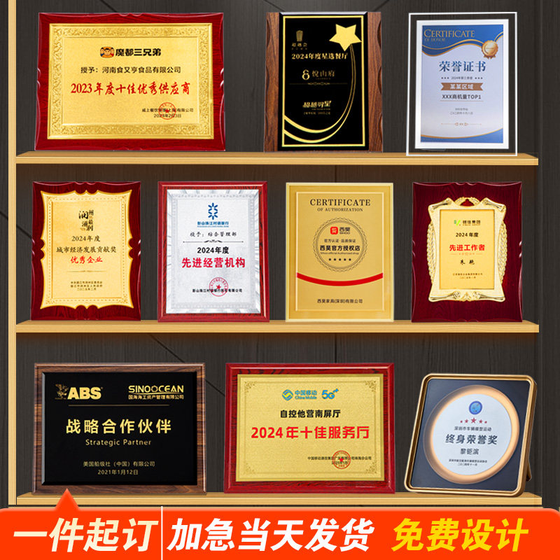 📚 奖牌定制牌匾定做荣誉牌木质证书木托铜牌授权牌水晶牌会员牌制作
