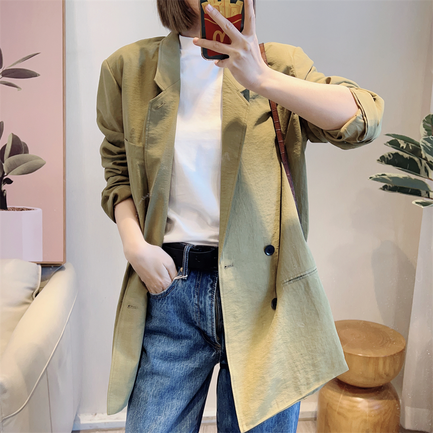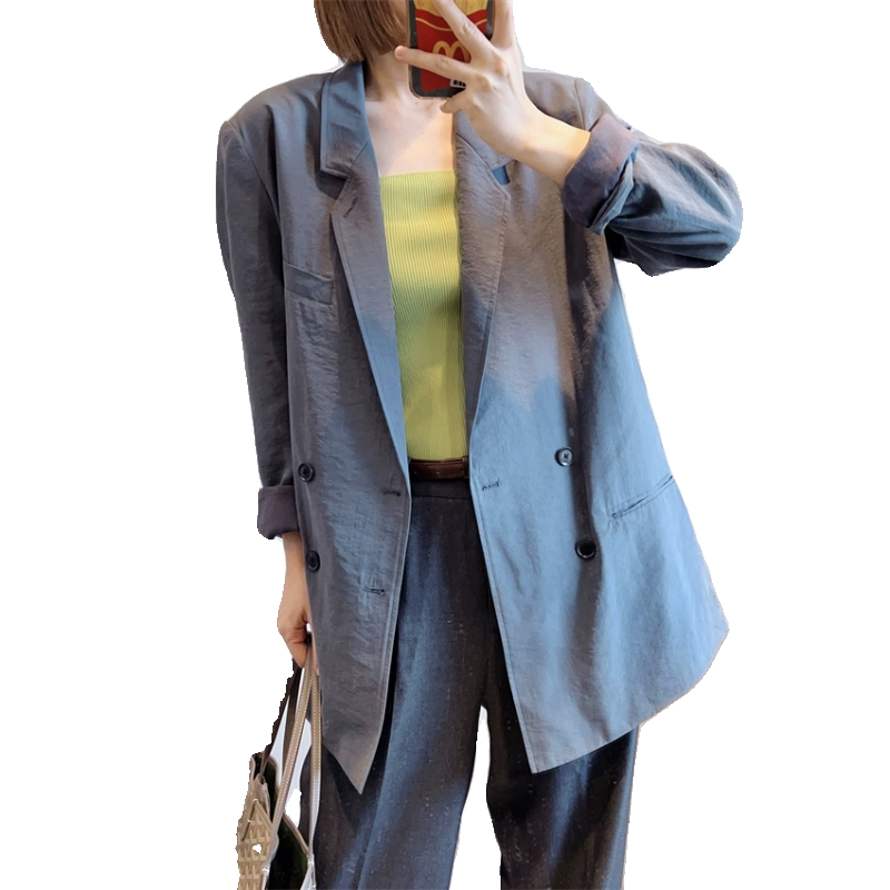 📚 0304 LE立体纹理感 抽象文艺干丝真丝混纺轮廓感双排扣慵懒西装