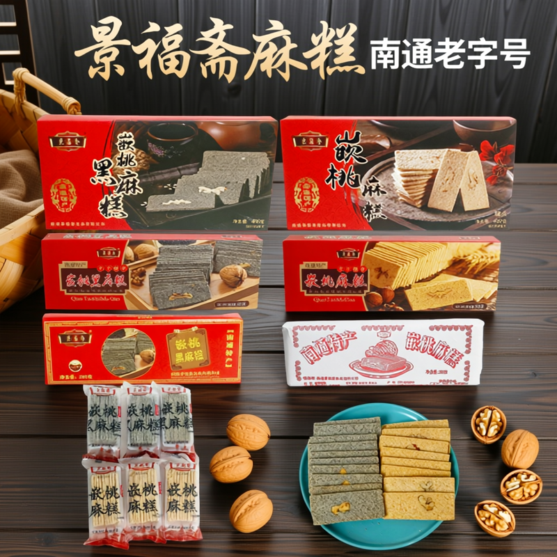 📚 南通特产景福斋嵌桃麻糕黑麻糕手工制作传统茶食点心年货老字号酥