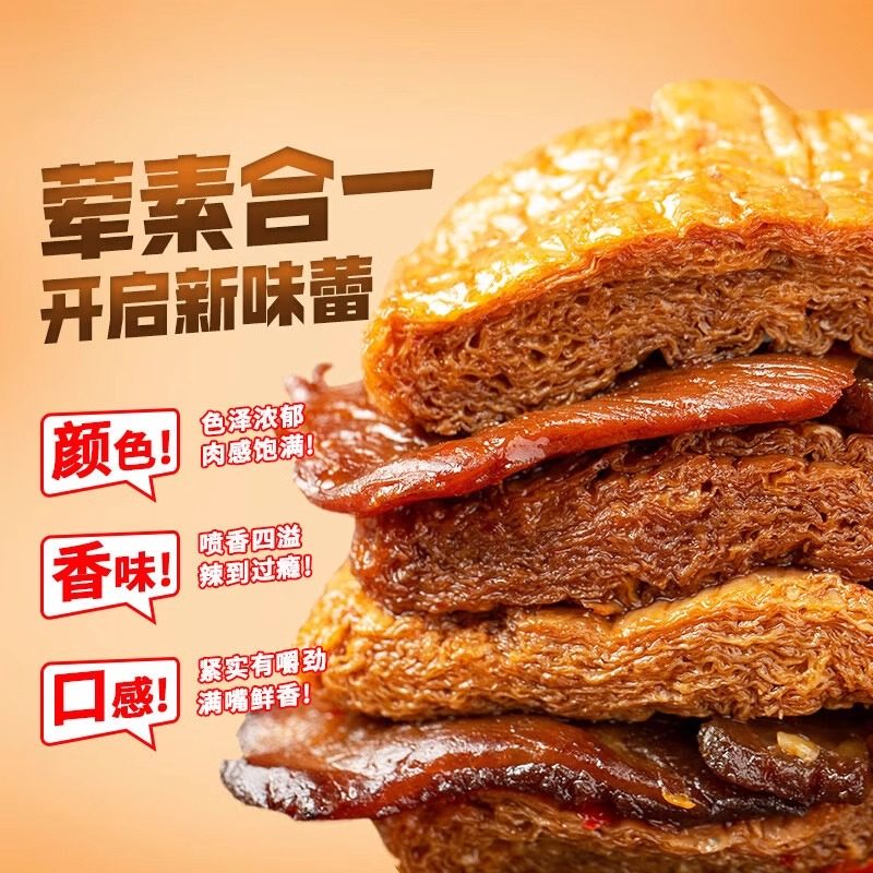 📚 王小卤鸡肉豆堡卤香手撕素肉香辣即食豆干豆腩解馋零食散装500g