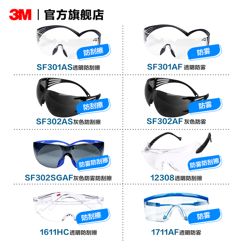 📚 3M护目镜防沙尘防雾紫外线飞溅防冲击骑行劳保工作防护眼镜SF300
