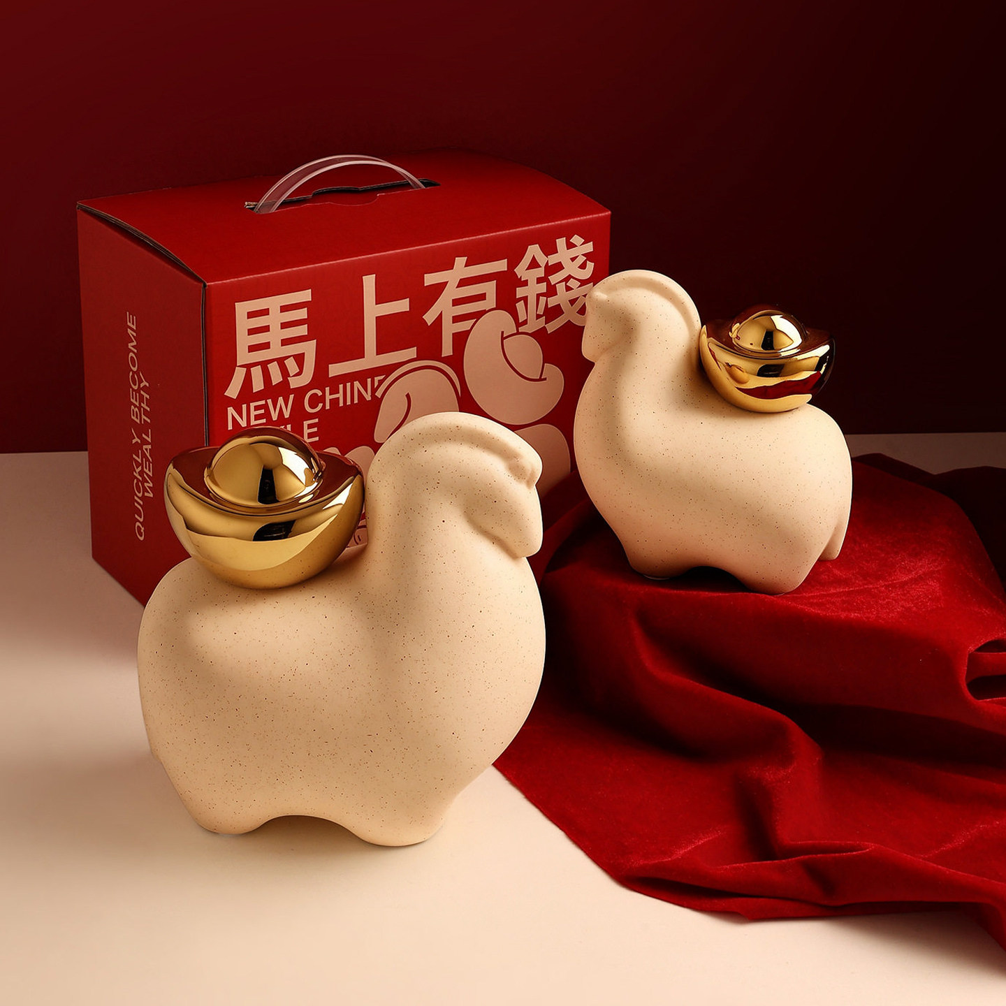 📚 创意寓意吉祥生肖摆件陶瓷礼盒装马上有钱伴手礼新年乔迁开业礼物