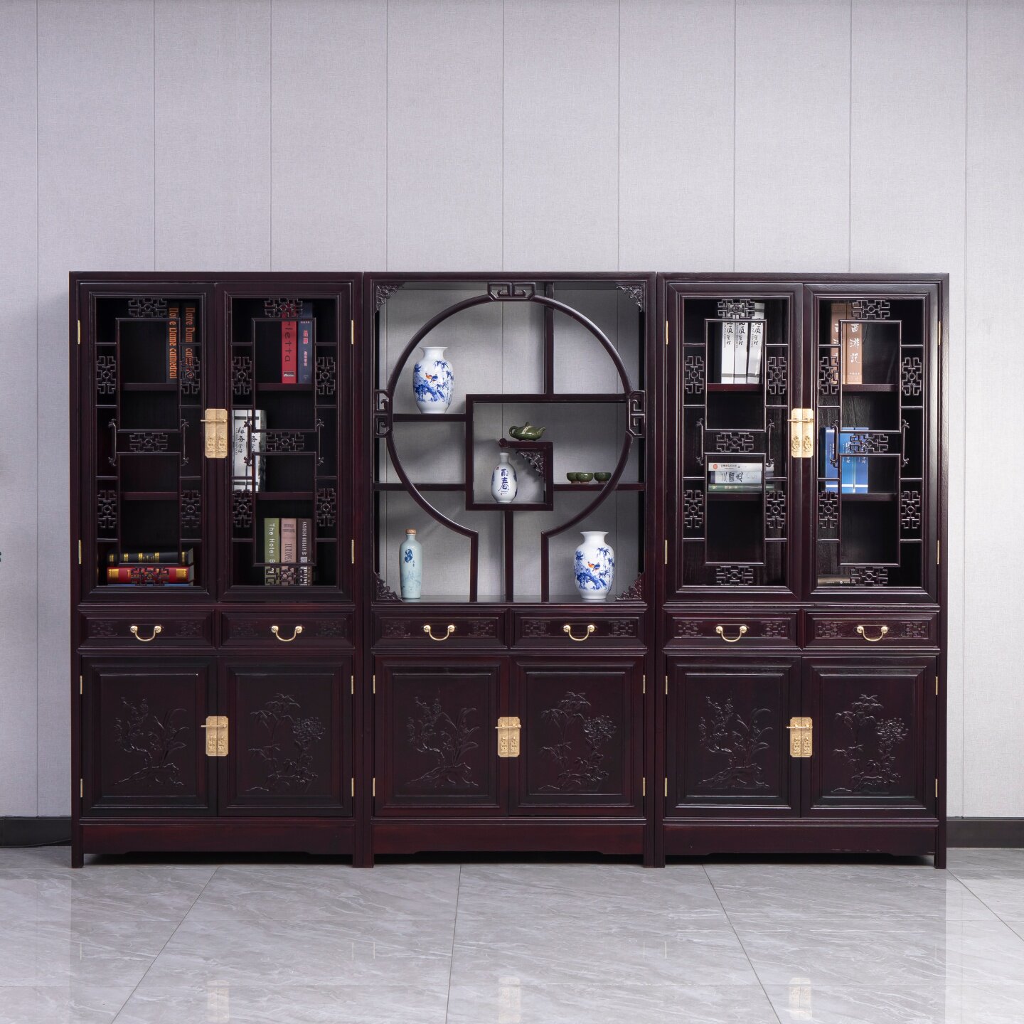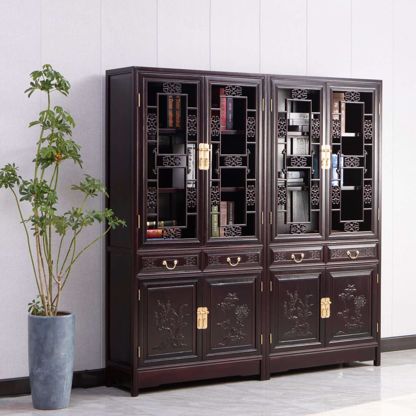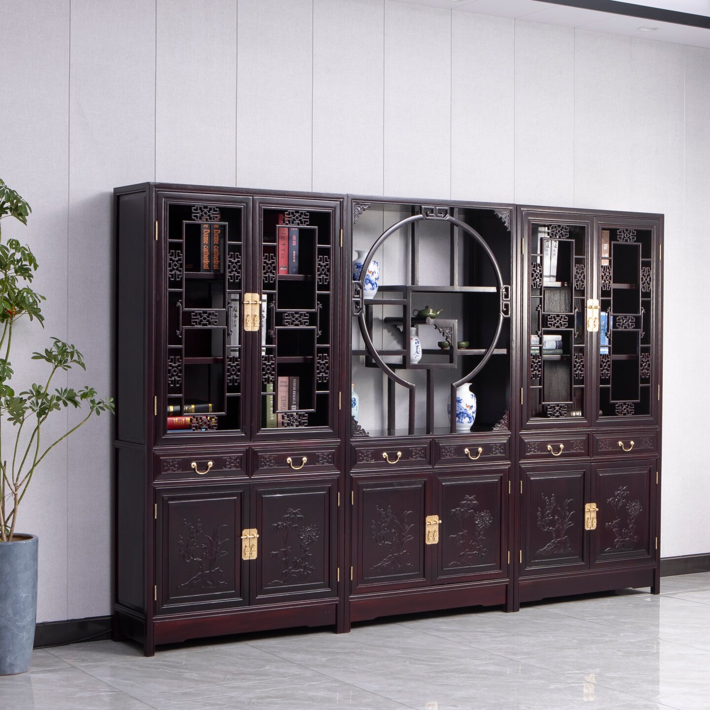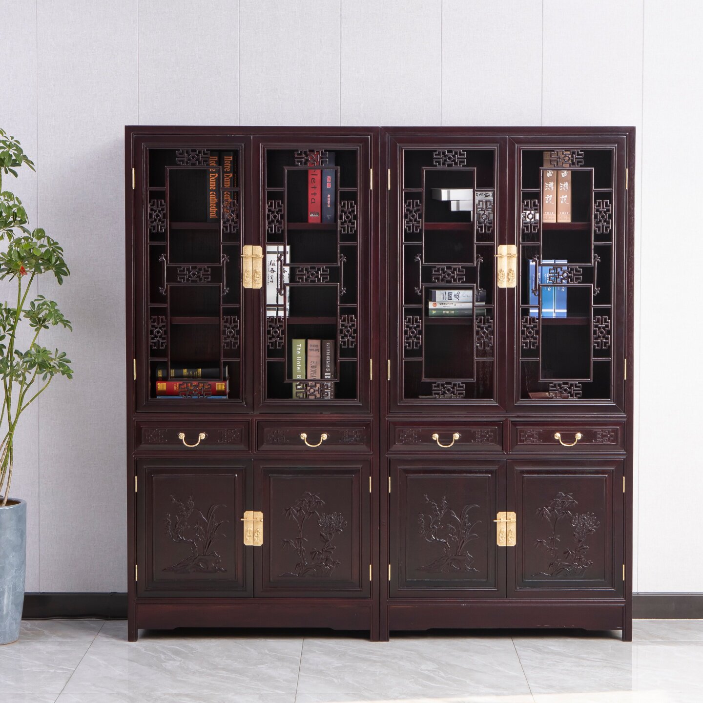 📚 顶箱书柜实木书柜办公桌组合古典中式书橱酒柜靠墙落地金花梨