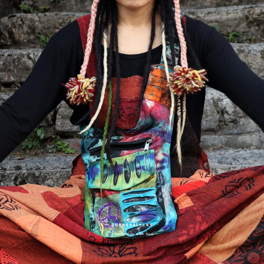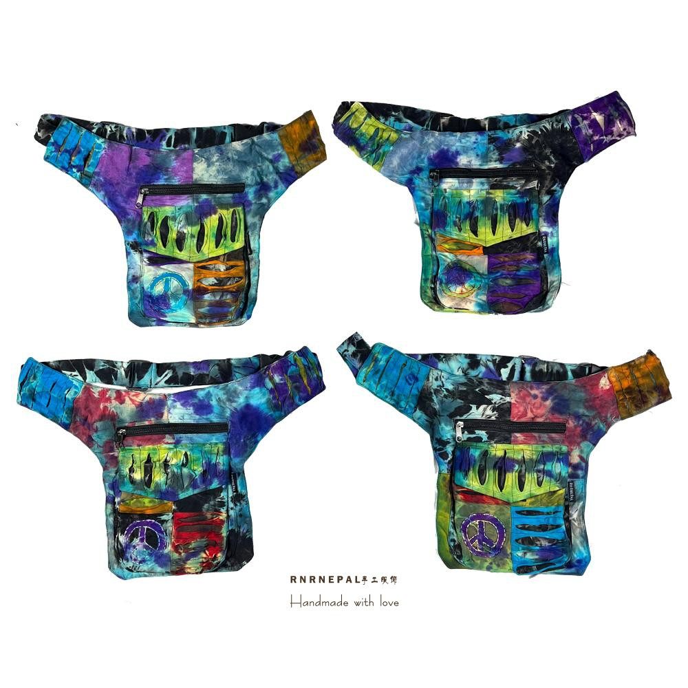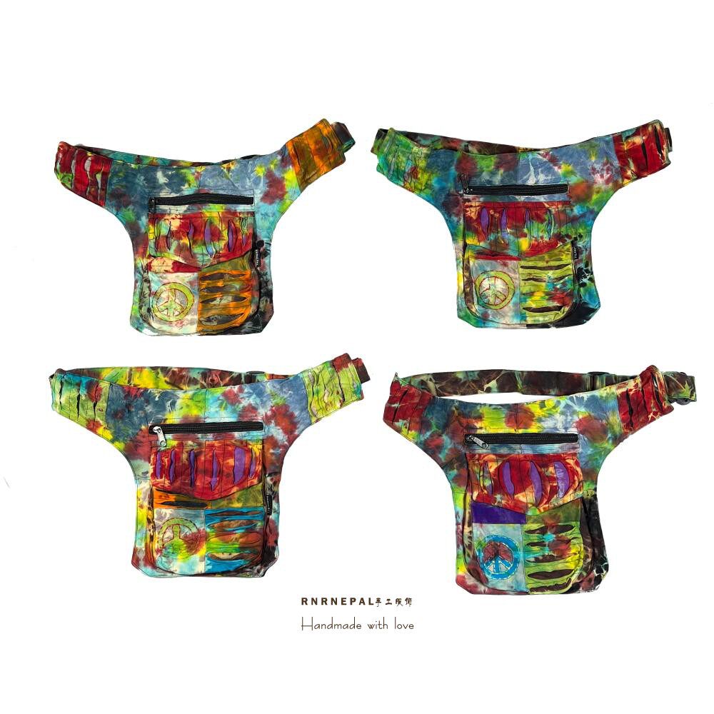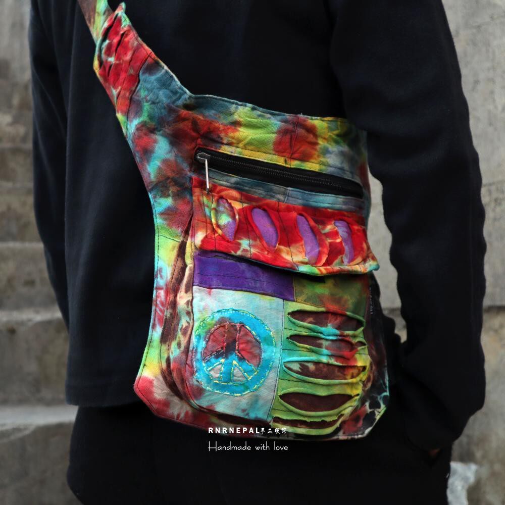 📚 Hippie waist bag嬉皮腰包手工扎染拼接反战标中性胸包男斜挎包女