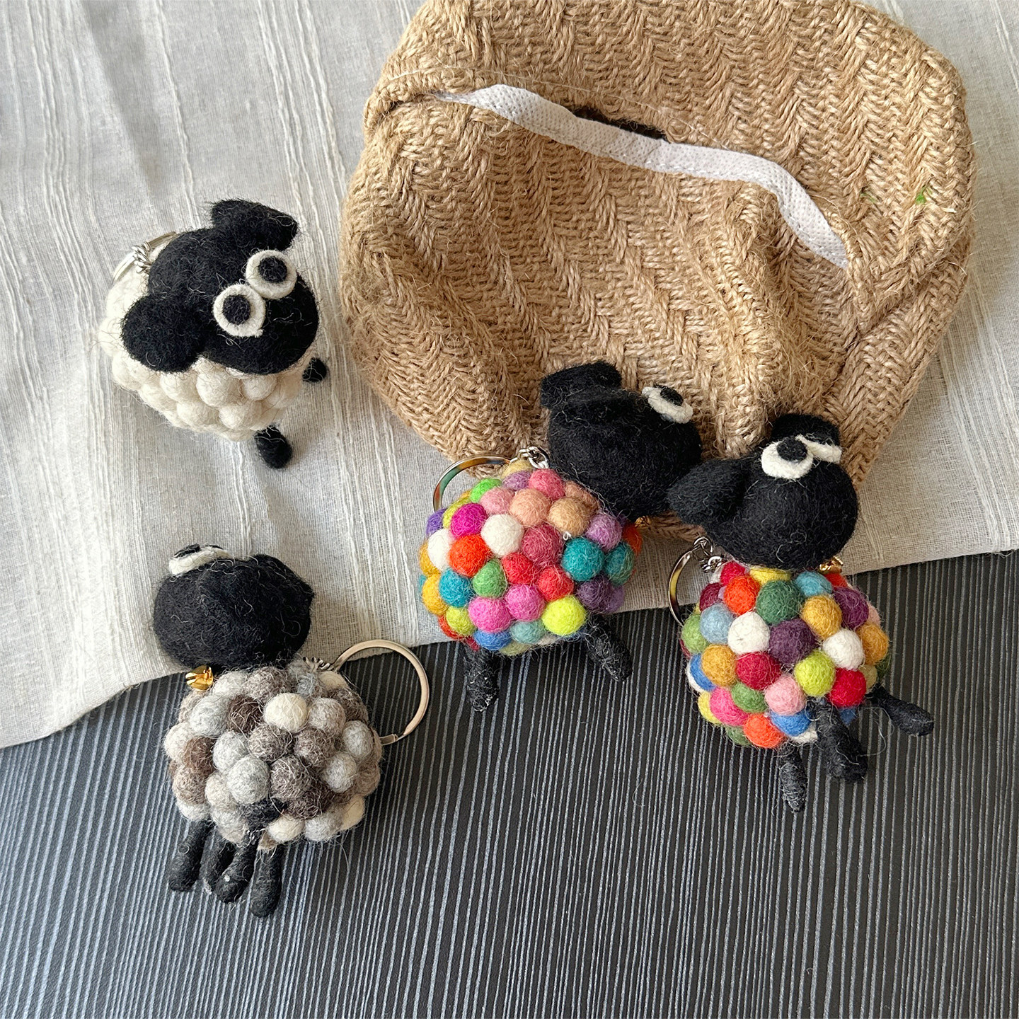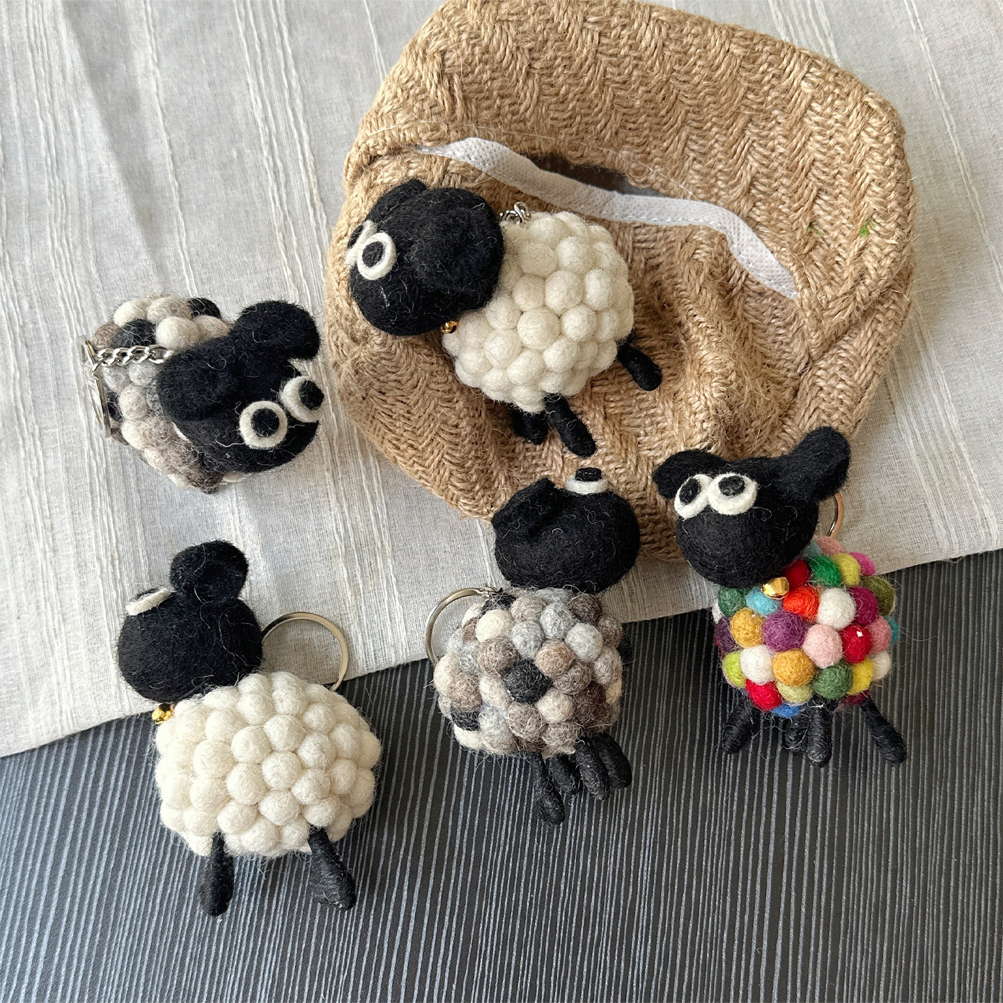 📚 一格杂货 尼泊尔手工羊毛毡包包挂件可爱肖恩羊书包挂饰玩偶礼物
