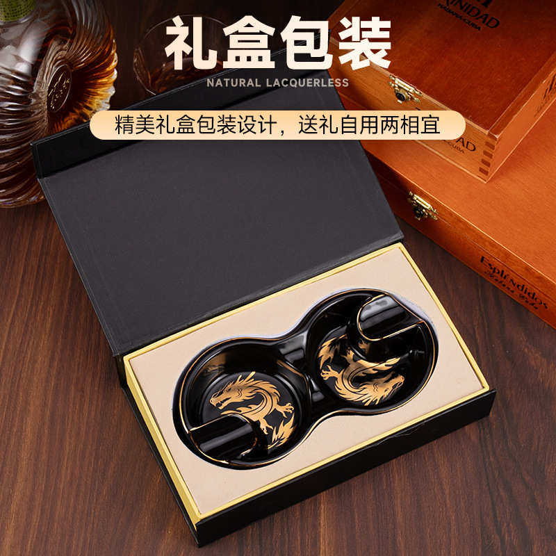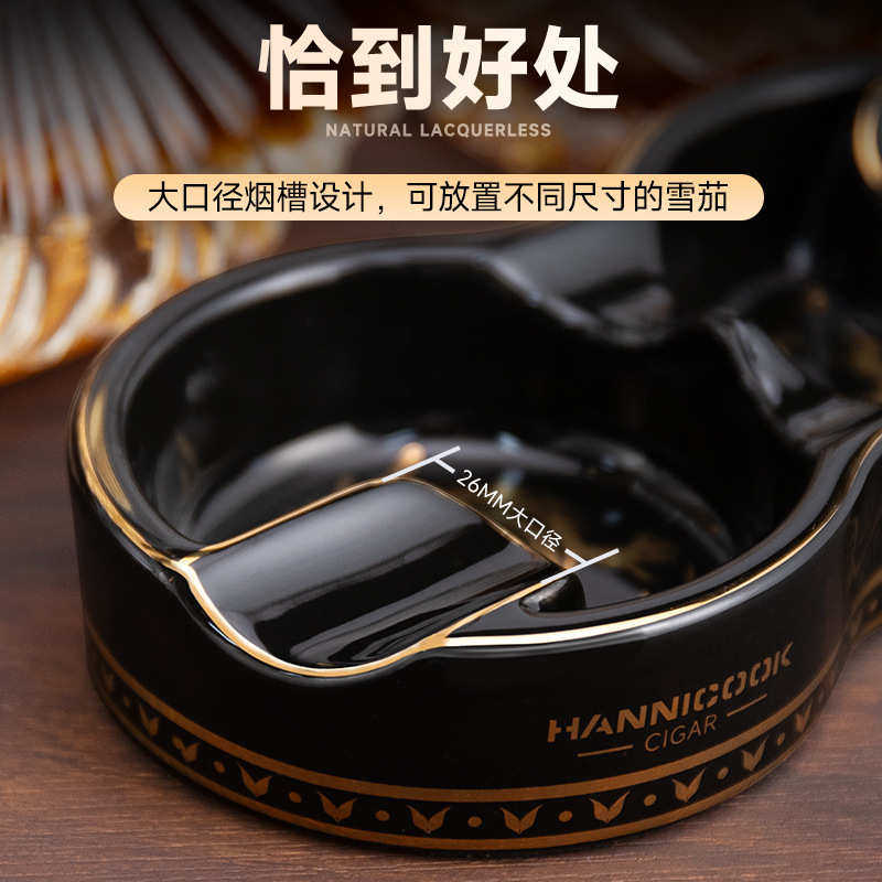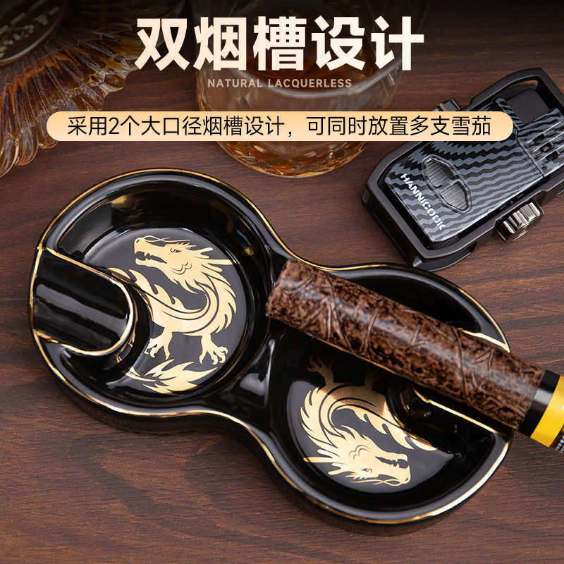 📚 HANNICOOK雪茄烟灰缸创意龙年8字形双烟槽陶瓷便携式复古雪茄烟缸