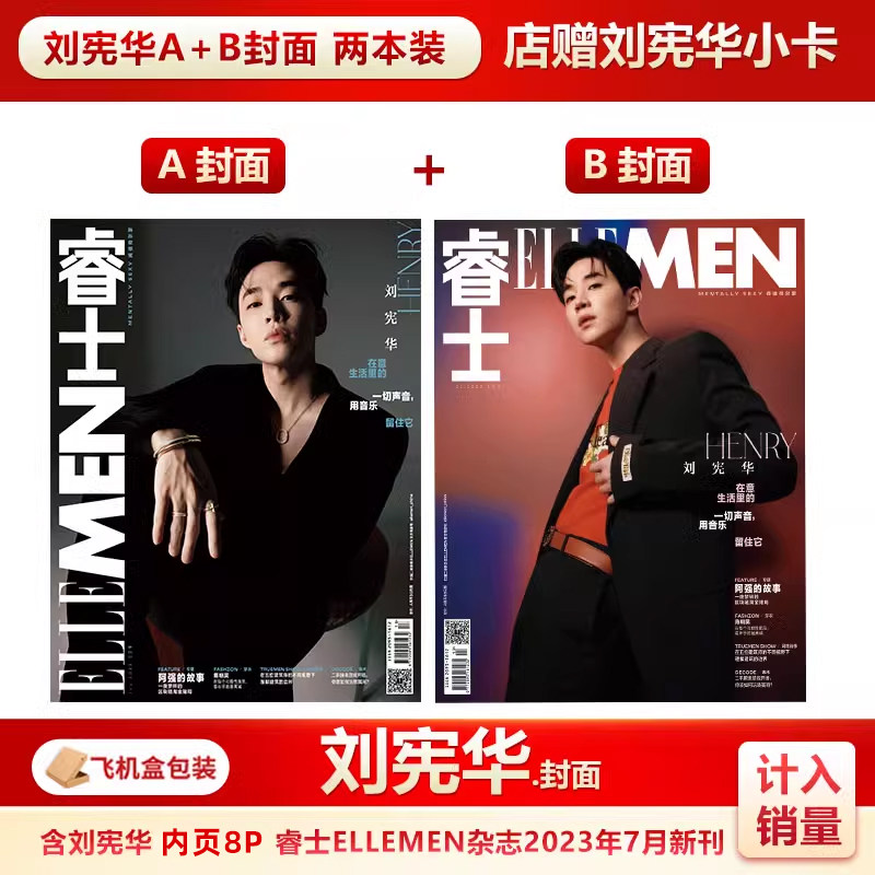 📚 现货 睿士7月 刘宪华A/B封面+店赠小卡 计入销量 飞机盒包 睿士ELLEMEN杂志2023年7/七月 刘宪华封面