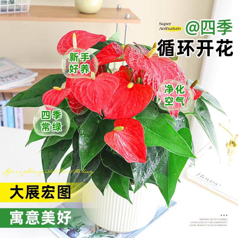 📚 水培红掌盆栽带花鸿运当头一帆风顺易活四季种植卉绿植物室内好养