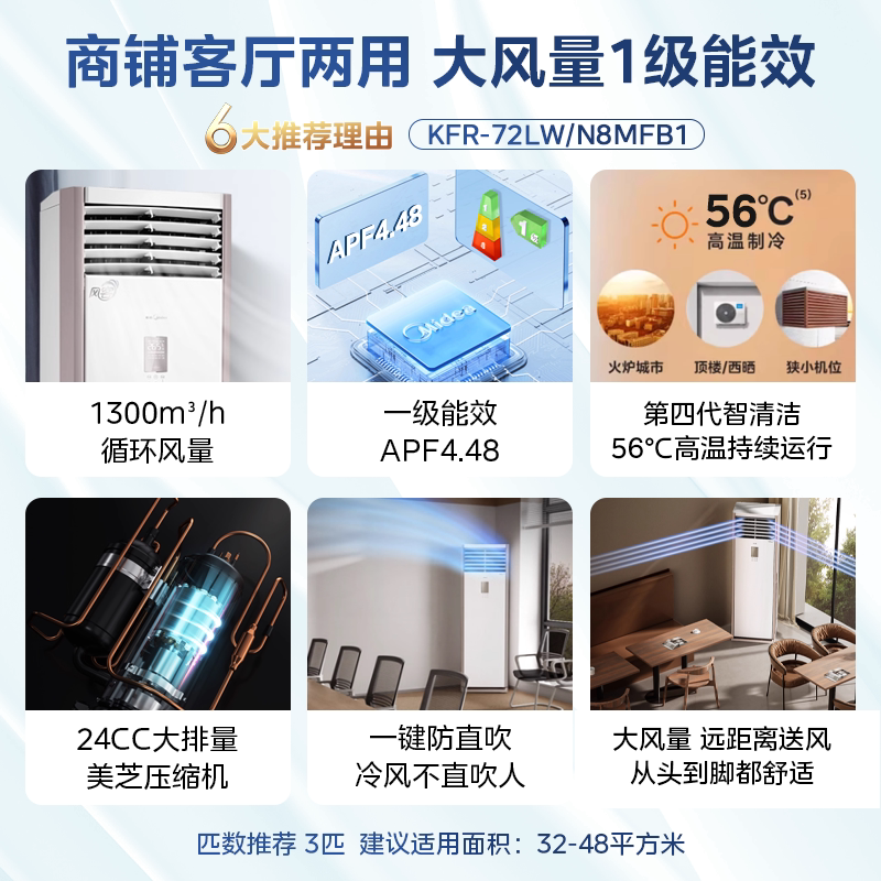 📚 美的空调大3匹一级能效变频冷暖风客立式客厅商用方柜机官方正品