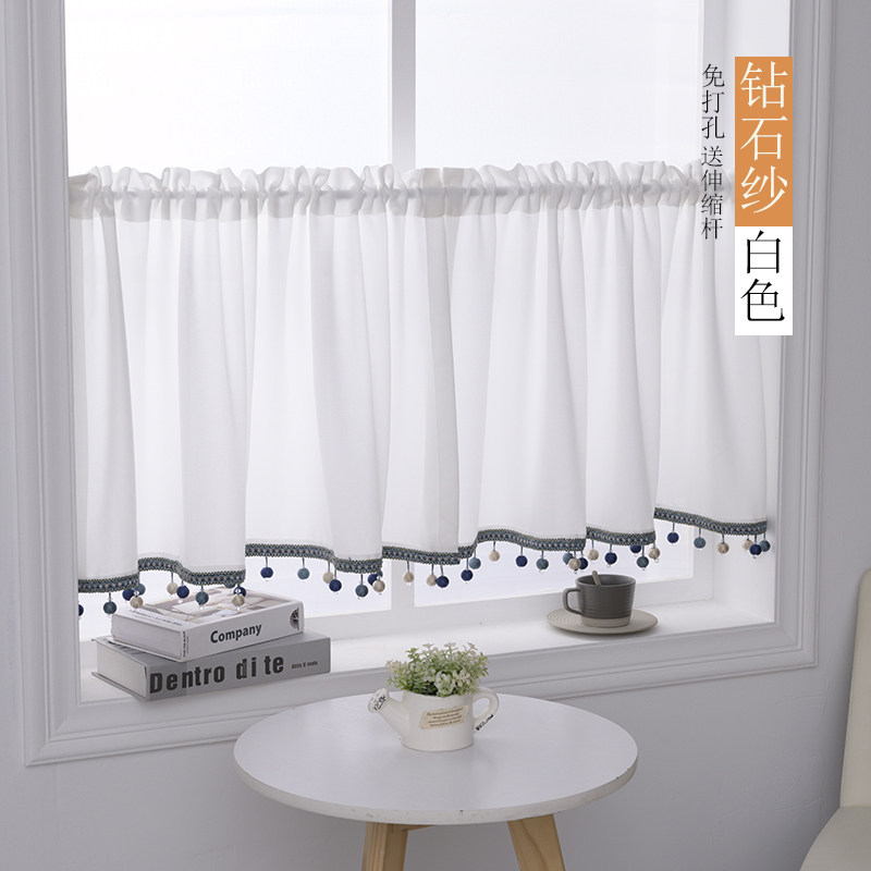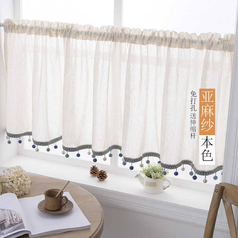 📚 免打孔半帘短帘透光窗帘纱帘门帘咖啡帘厨房遮挡衣柜防尘帘亚麻