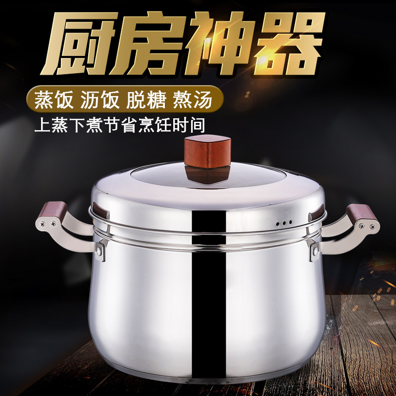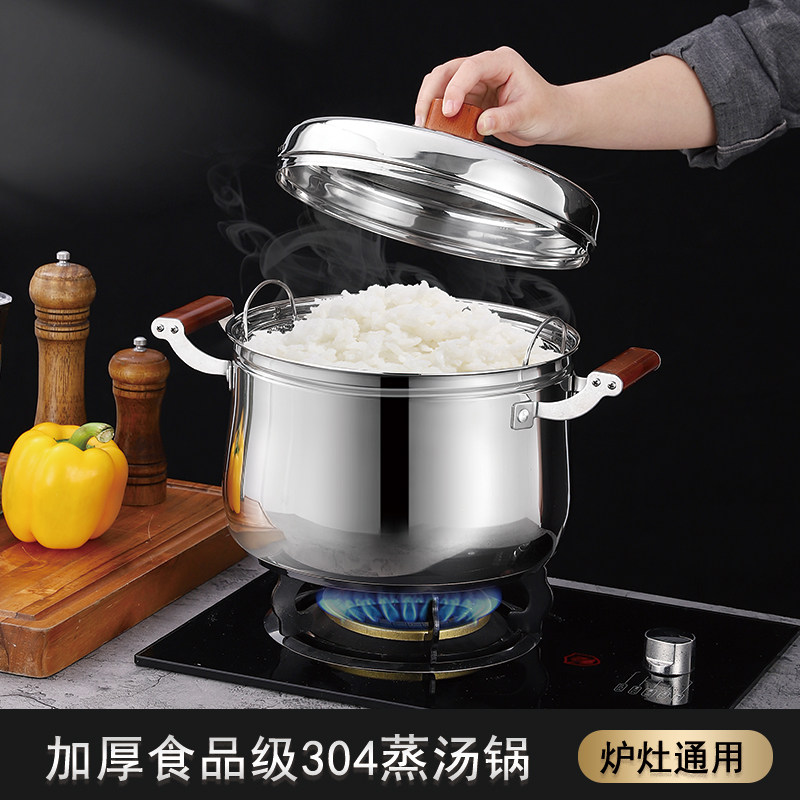 📚 28cm单层脱糖沥水蒸锅 304食品级不锈钢复底日式汤蒸锅电煤气通用