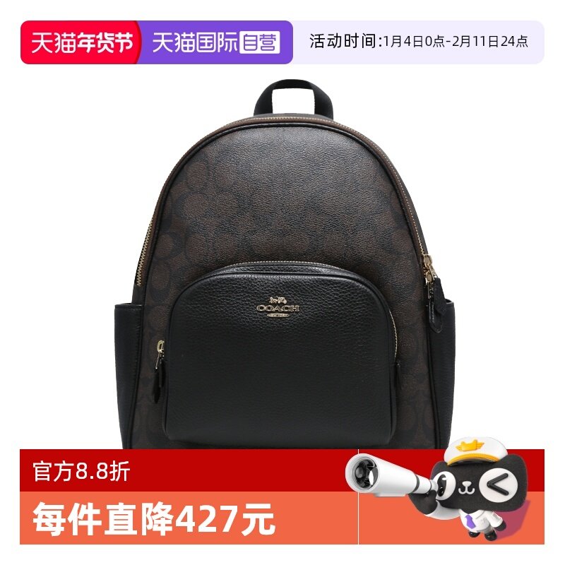 📚 【自营】COACH/蔻驰大号女士PVC配皮老花双肩背包棕色