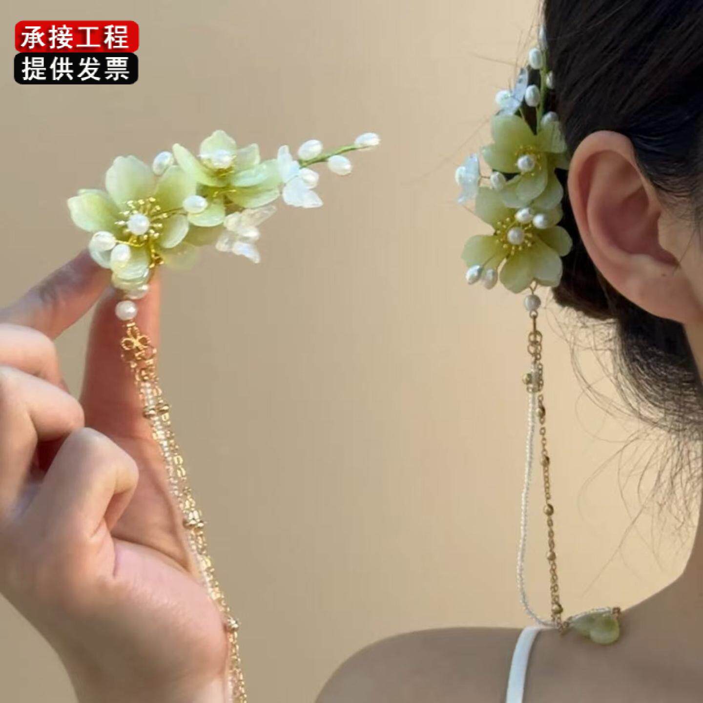 📚 「花秋宣露」2026新款新中式古风花朵发夹女绝美流苏头饰边夹发饰