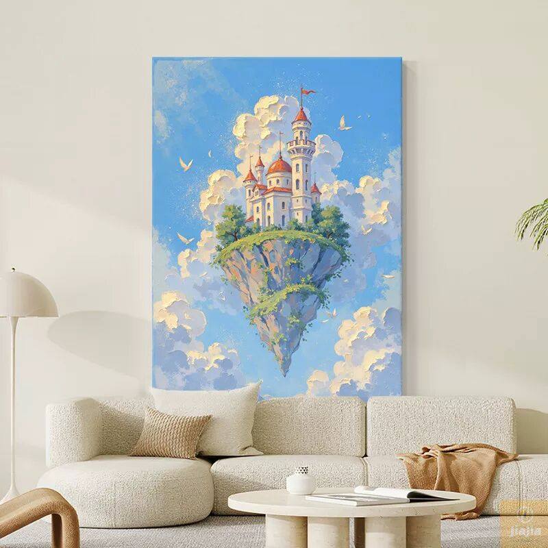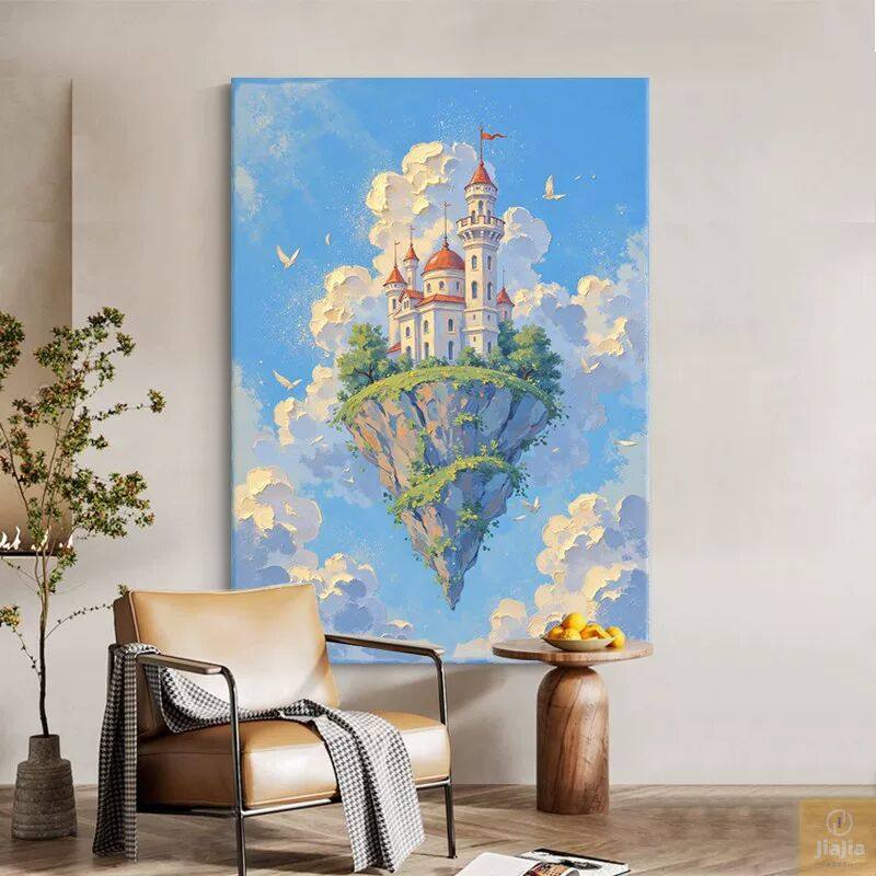#梦幻城堡油画 #纯手绘风景 #客厅装饰画 #玄关挂画 #宫崎骏风格