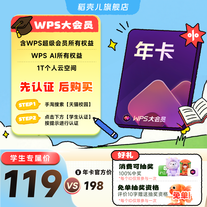 📚 【学生专属】WPS大会员1年填写手机号充值 官方正版 先认证再下单