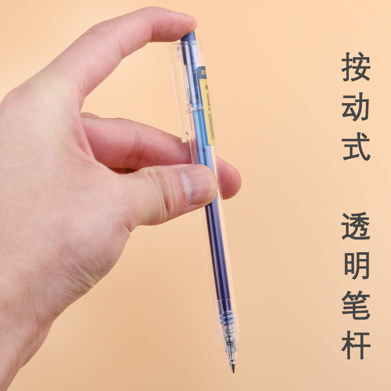 📚 12支装晨光优品AGP87902透明笔杆按动中性笔子弹头简约水笔签字笔0.5mm办公笔芯文具用品考试专用磨砂杆水性