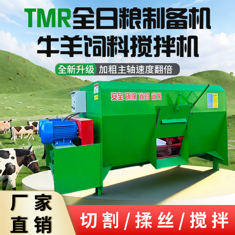 📚 双轴TMR全日粮牛羊饲草料搅拌机秸秆粉碎草块揉丝混合一体拌料机