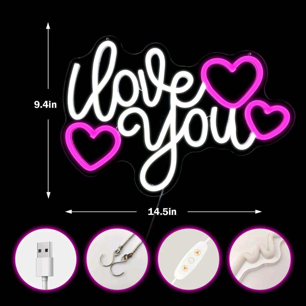 📚 LOVE求婚示爱情侣餐厅心跳表白派对LED发光灯牌霓虹灯神器可调光