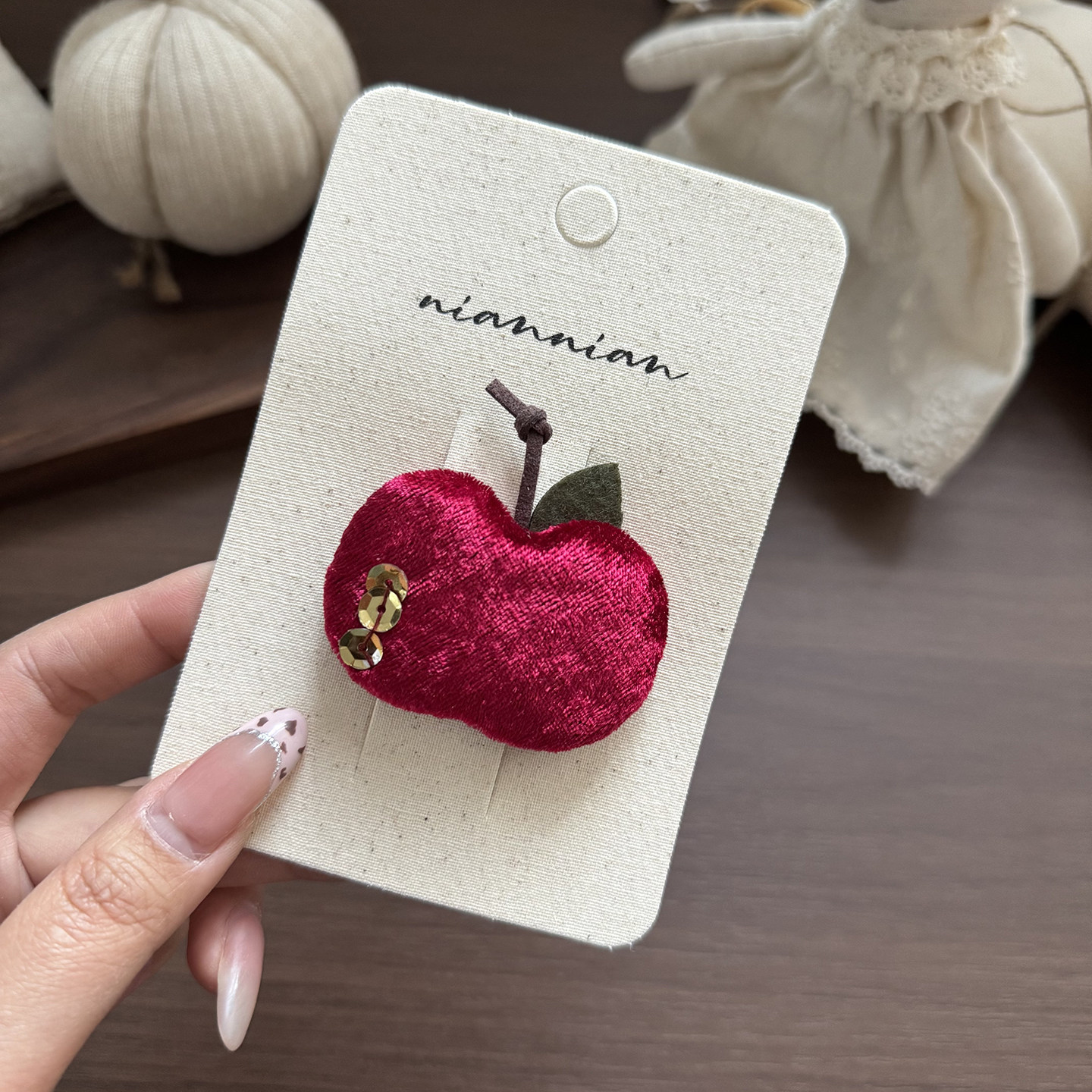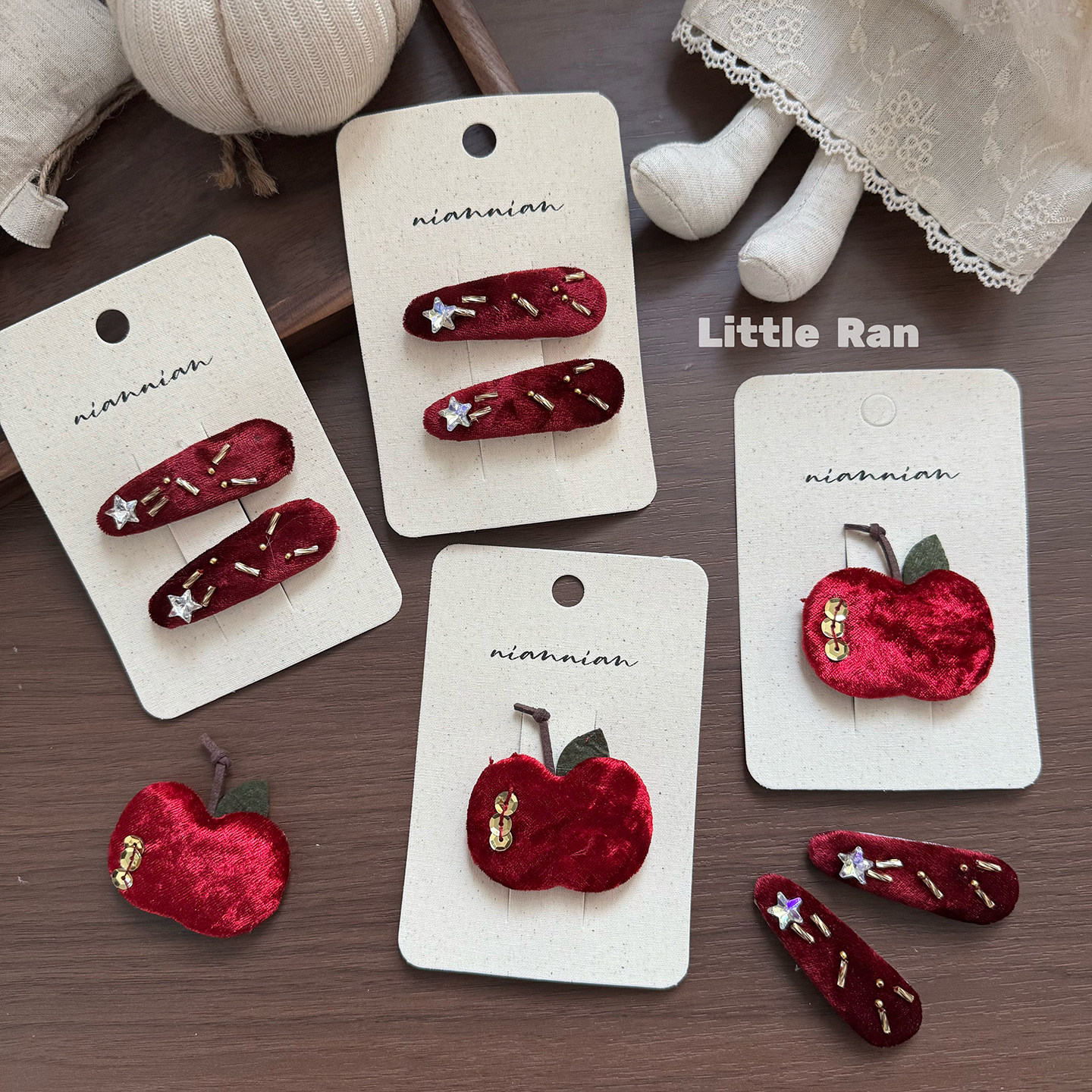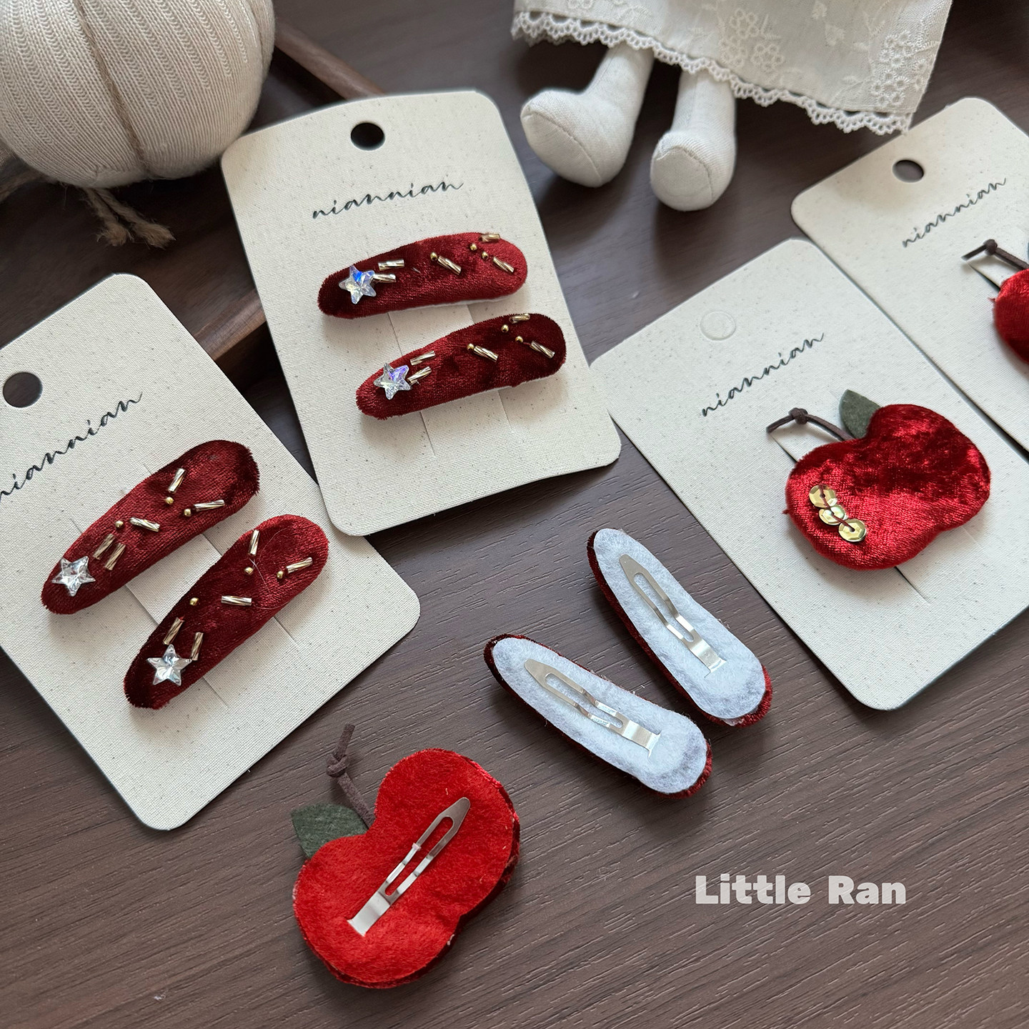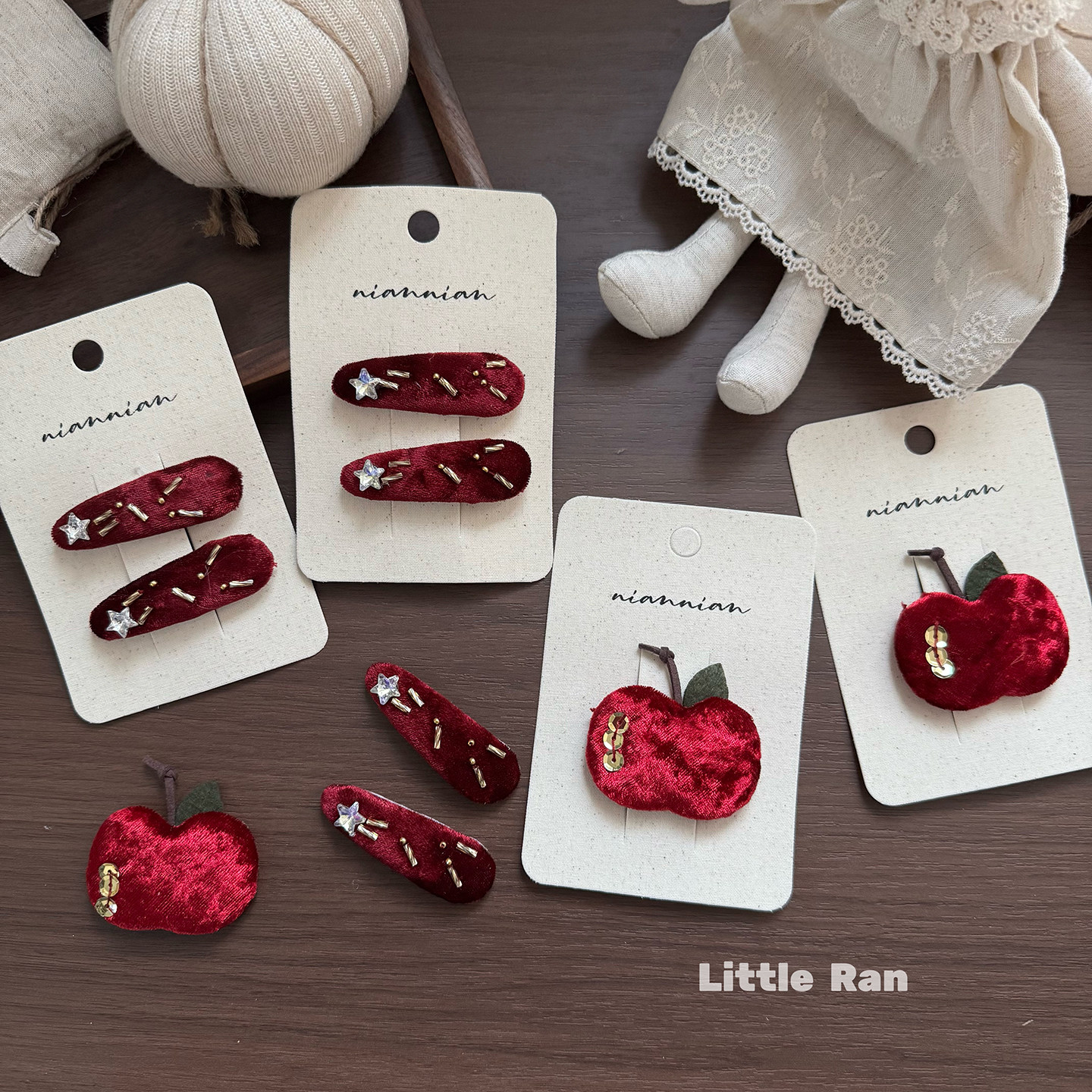 📚 Little Ran新年红色苹果发夹女童布艺星星刘海夹侧边夹手工甜美