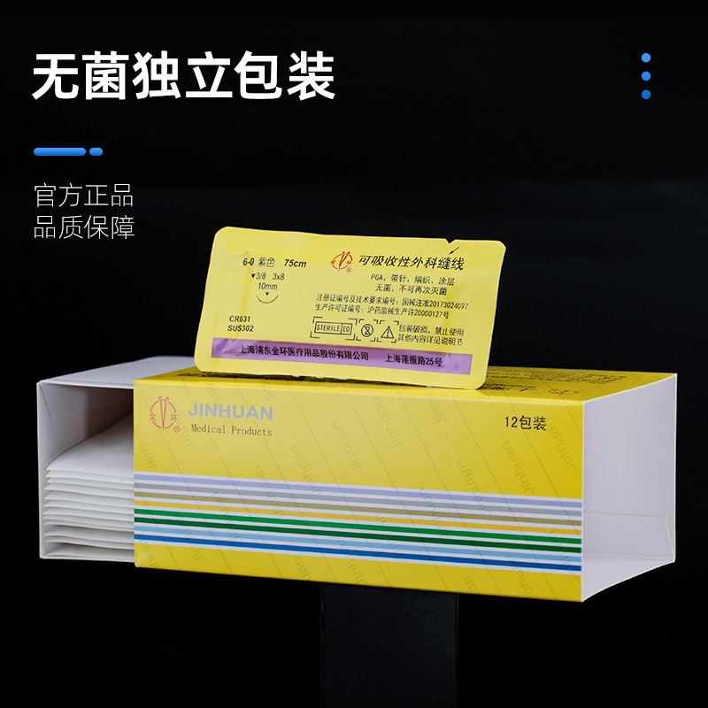 📚 金环可吸收外科手术缝合线带针医用7/5/6-0双眼皮美容提眉pga角针