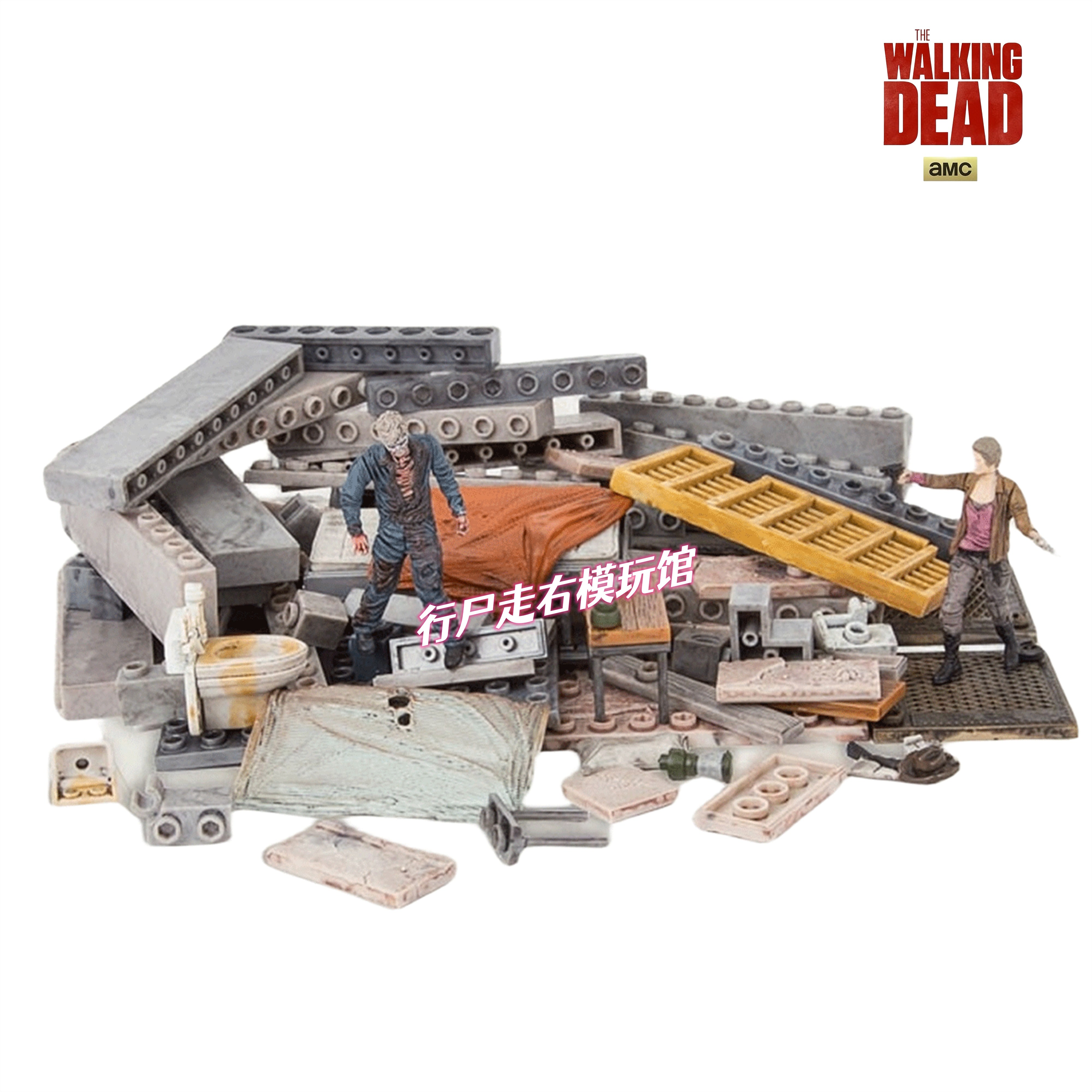 📚 麦克法兰行尸走肉积木上层牢房微缩场景1/35兼容乐高拼装建筑模型