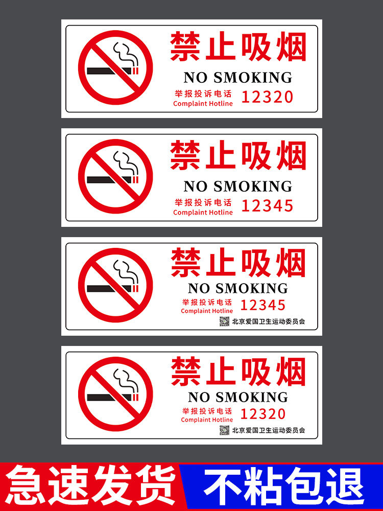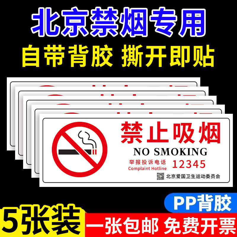 📚 新版禁烟贴标识贴纸北京禁止吸烟提示牌12345举报电话公共场所严禁吸烟标识牌控烟戒烟爱国卫生委员会标志牌