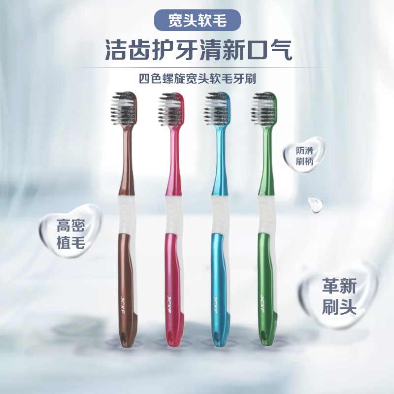 📚 健牌清新螺旋细丝软毛宽头牙刷温和洁齿亮白男女情侣成人通用家庭