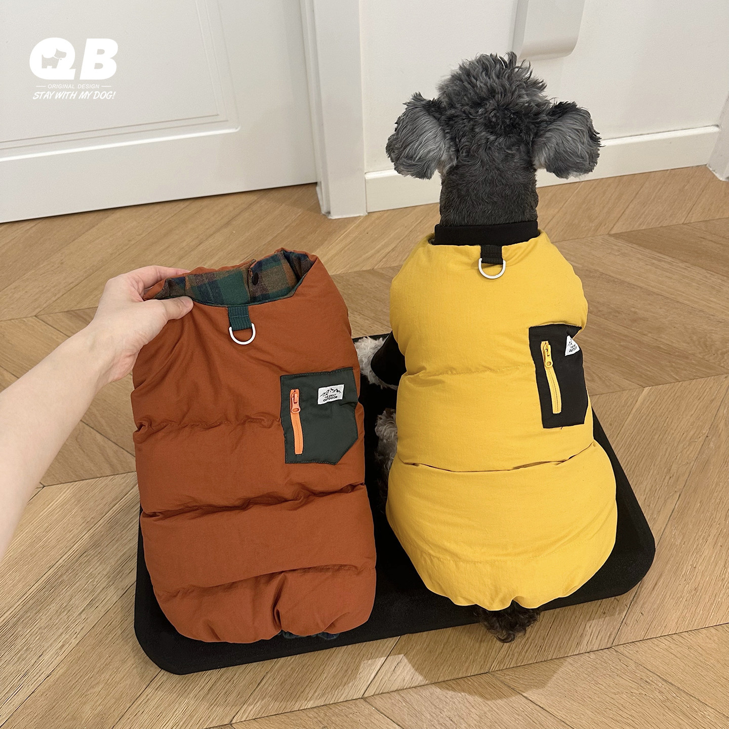 📚 宠物狗冬装开衫棉服牵引双面马甲雪纳瑞泰迪比熊加厚保暖棉衣坎肩