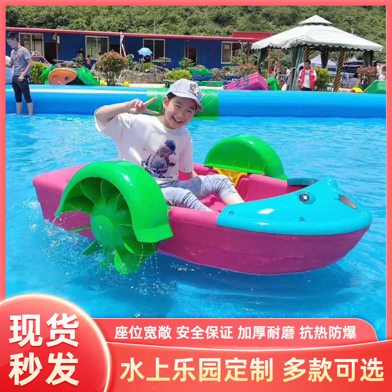 📚 儿童充气水池电动碰碰船手摇船手摇车水上乐园玩具双人亲子船