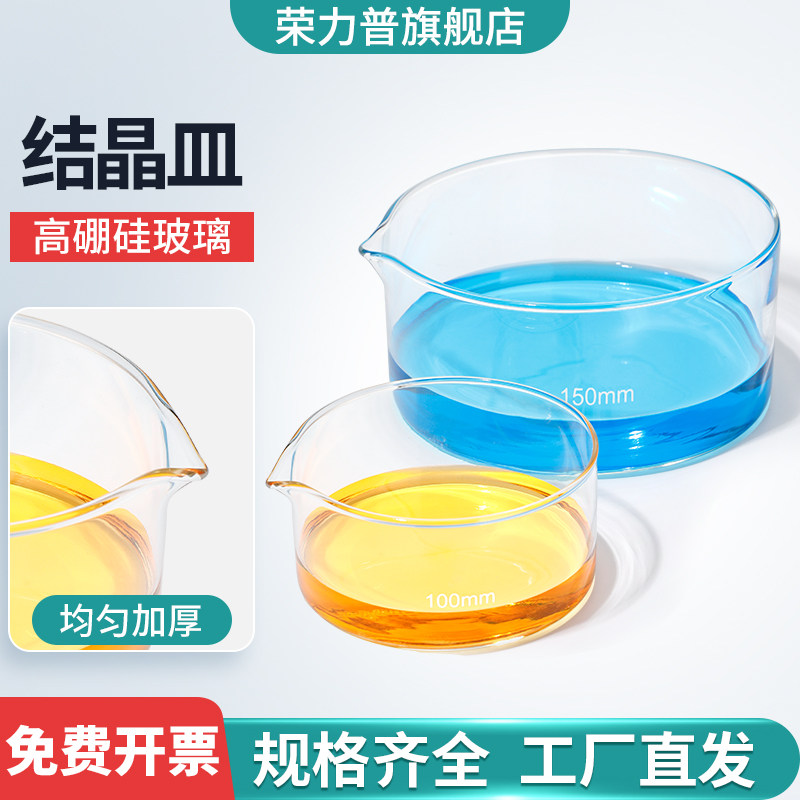 📚 荣力普玻璃结晶皿透明高硼硅耐高温具嘴结晶皿平底皿蒸发皿实验室用70/80/90/100/120/125/150/180/200/230mm
