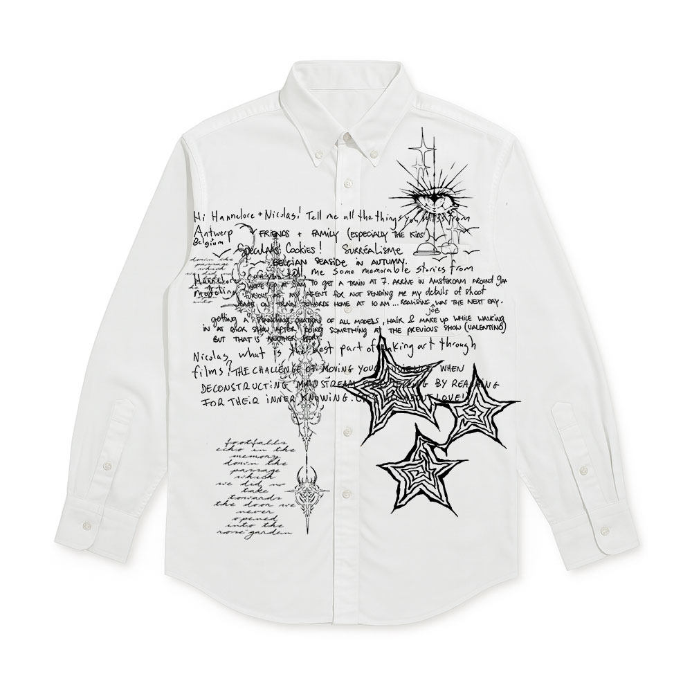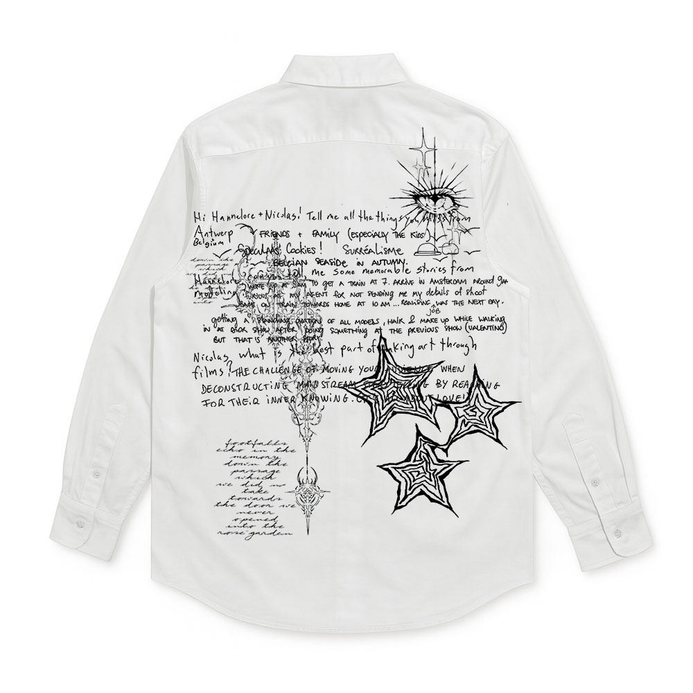 📚 亚文化视觉系上衣美式复古高级感涂鸦白色早秋衬衫外套男女情侣款