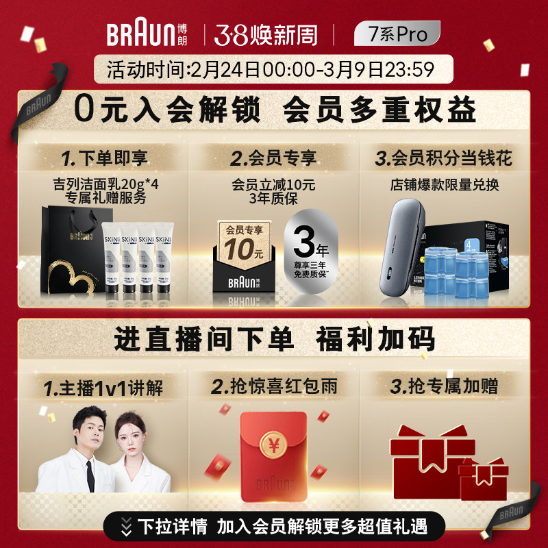 📚 【政府补贴】博朗雷霆7系pro电动剃须刀便携往复式便携刮胡刀